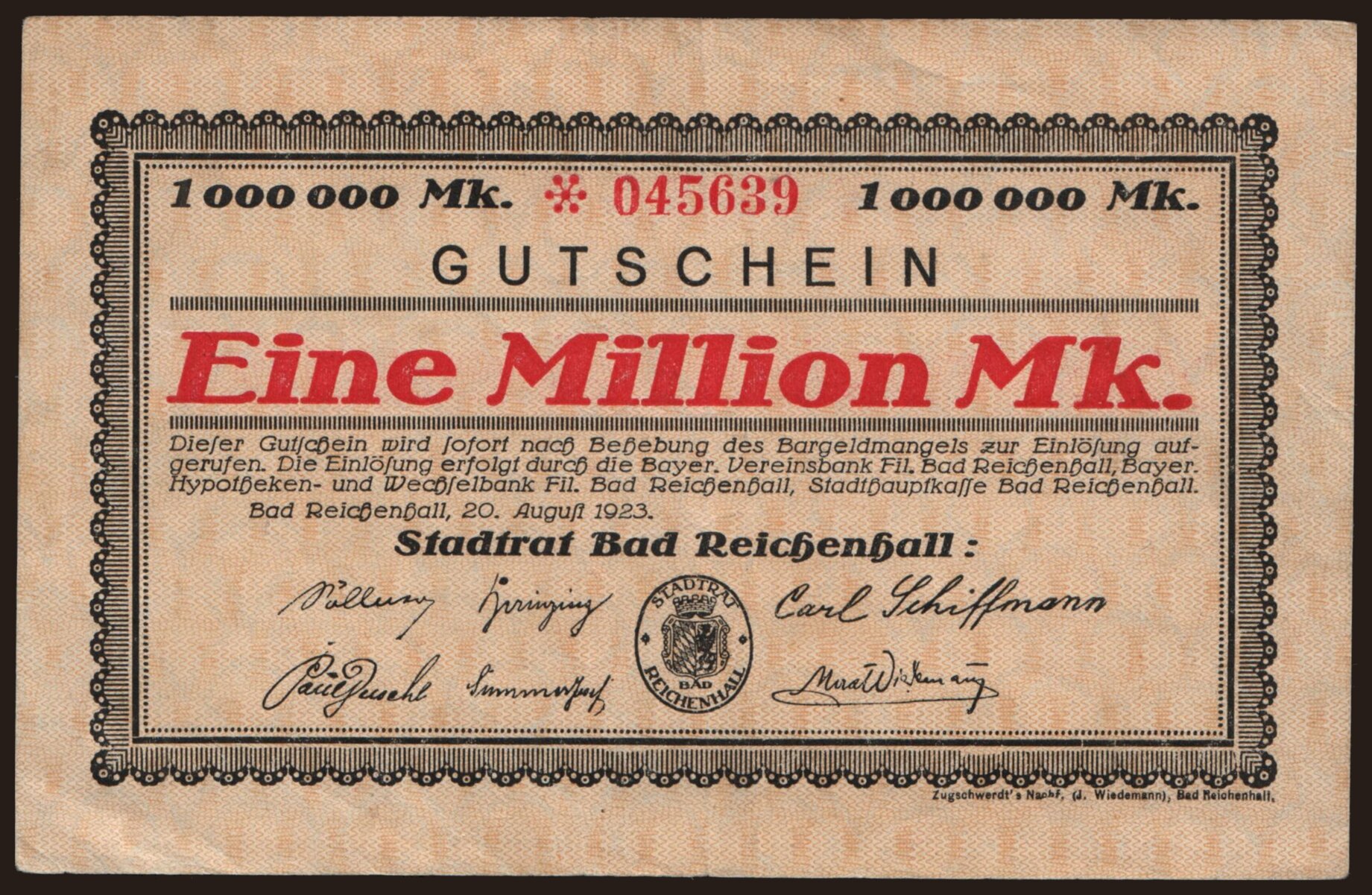 Bad Reichenhall/ Stadtrat, 1.000.000 Mark, 1923