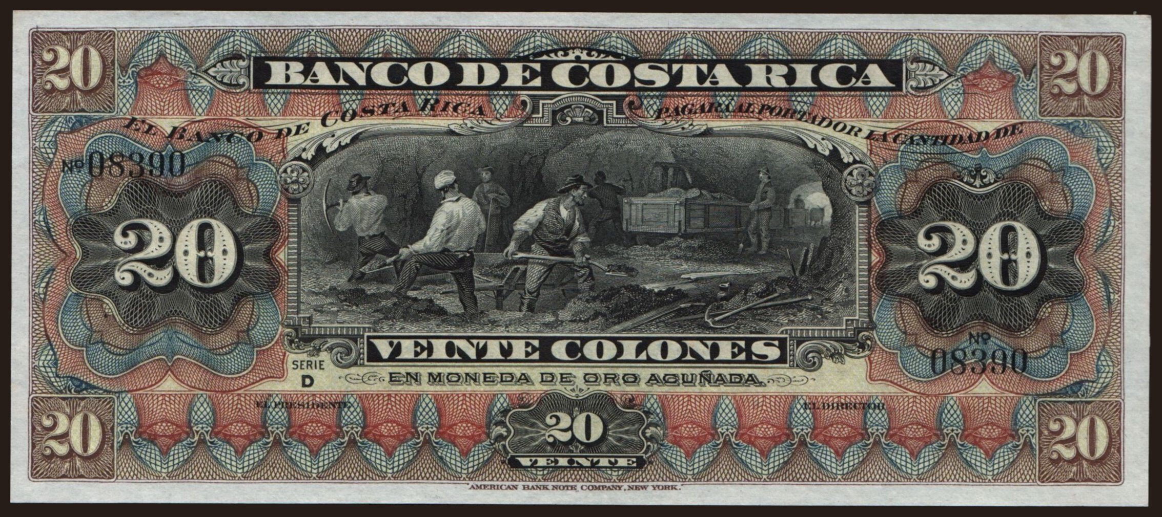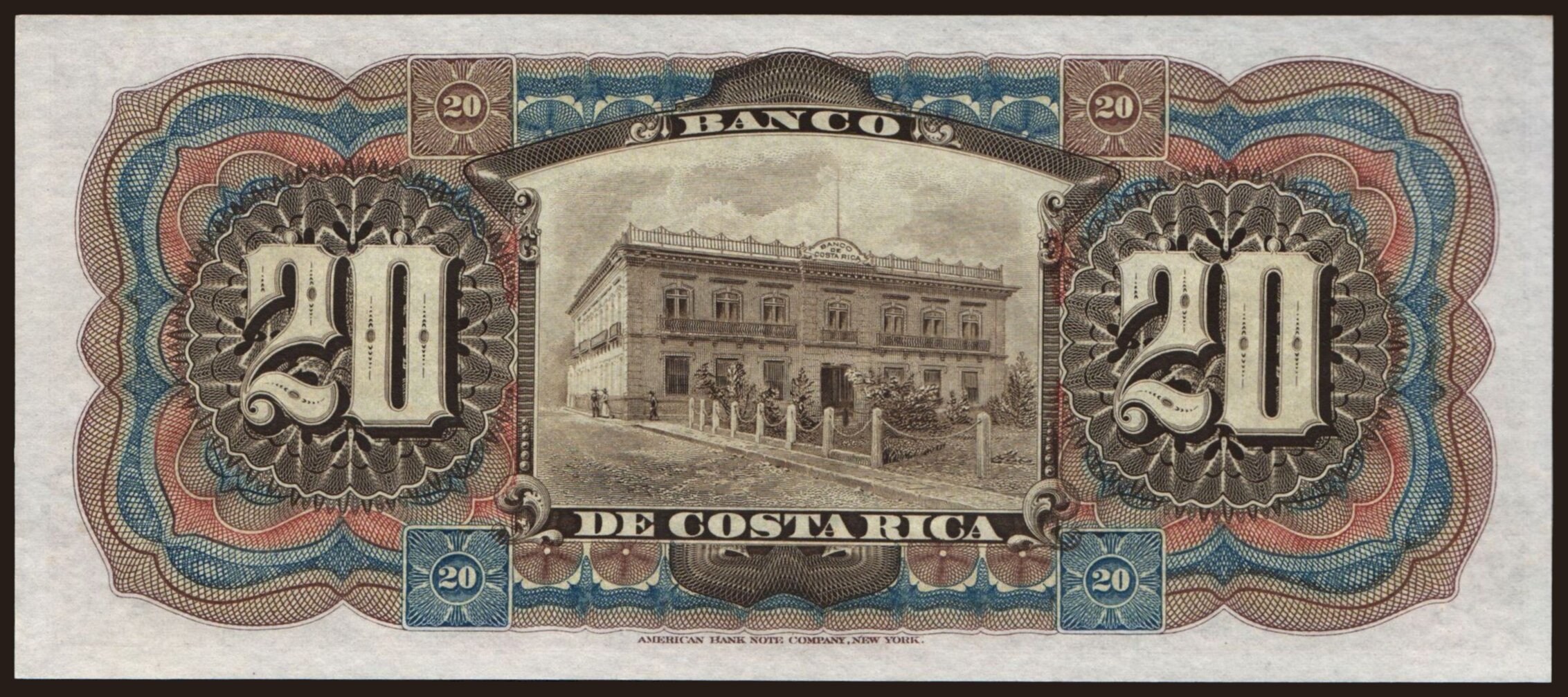 Banco Anglo Costarricense, 20 colones, 1909, MUESTRA