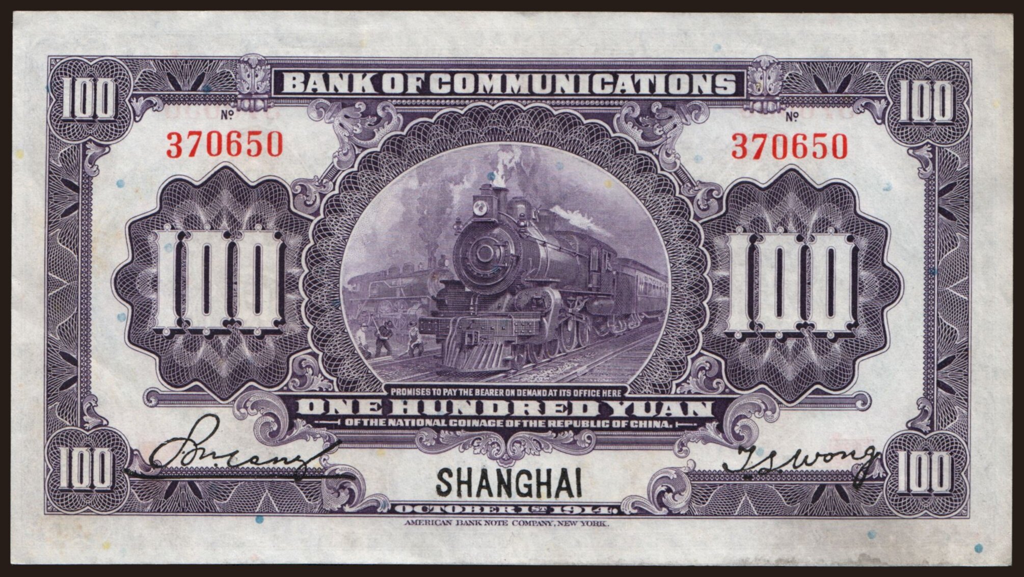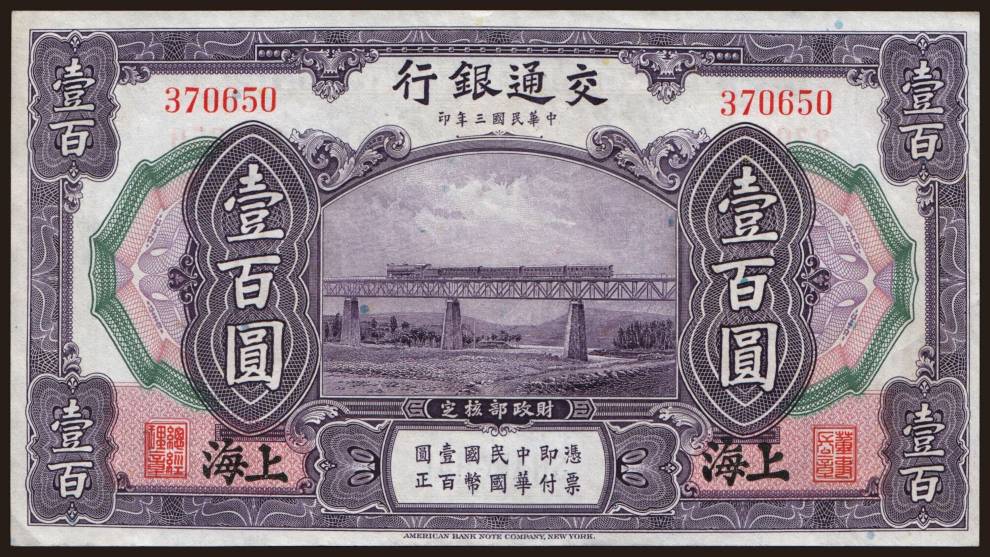 Bank of Communications, 100 yuan, 1914