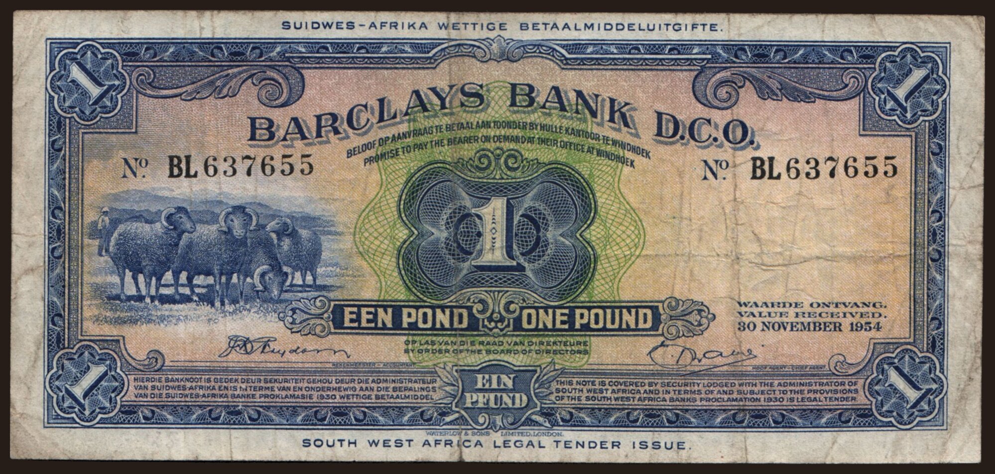 Barclays Bank, 1 pound, 1954