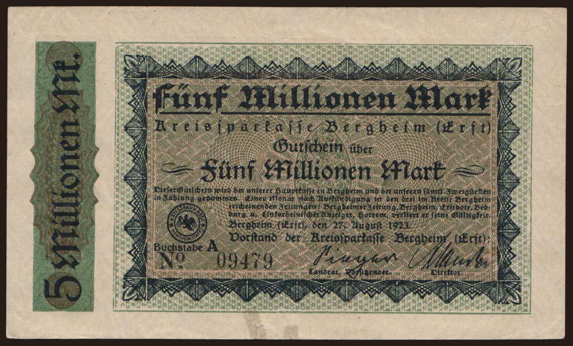 Bergheim/ Kreissparkasse. 5.000.000 Mark, 1923
