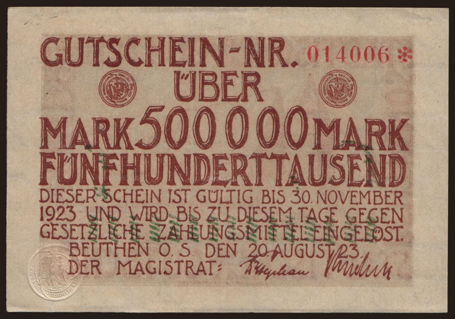 Beuthen/ Stadt, 500.000 Mark, 1923