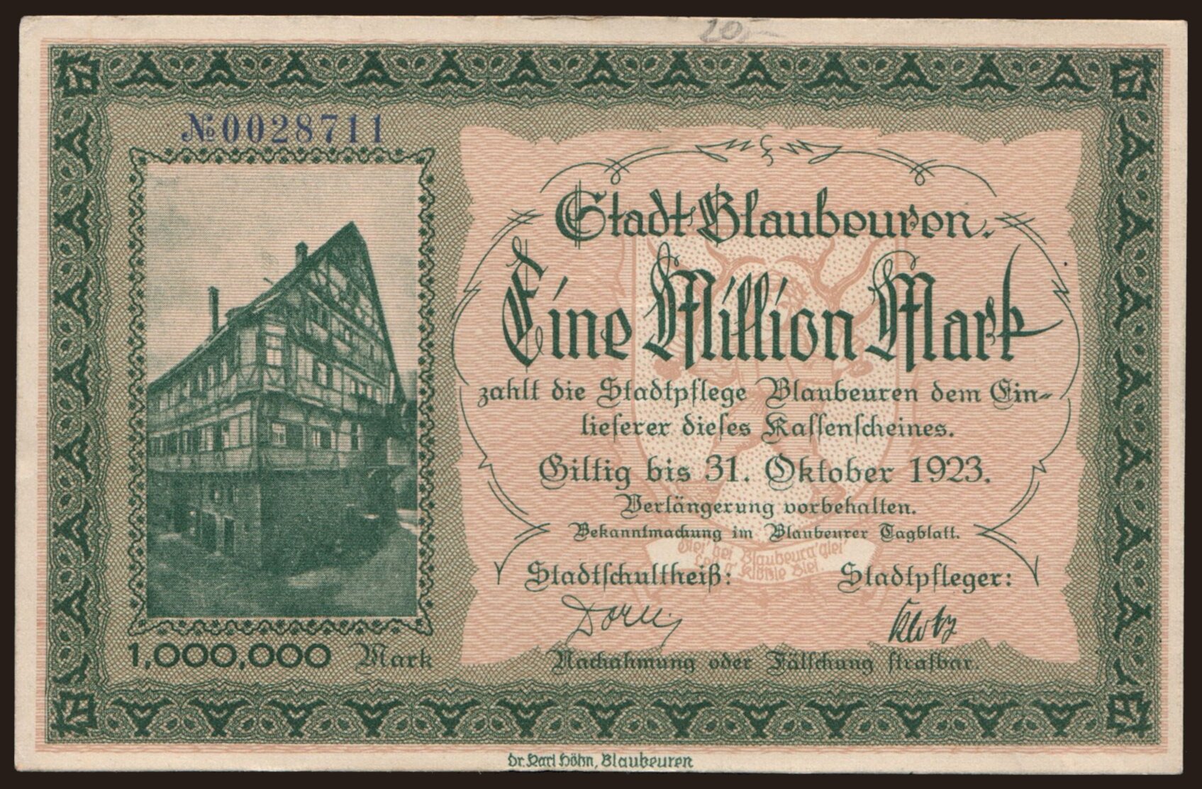 Blaubeuren/ Stadt, 1.000.000 Mark, 1923