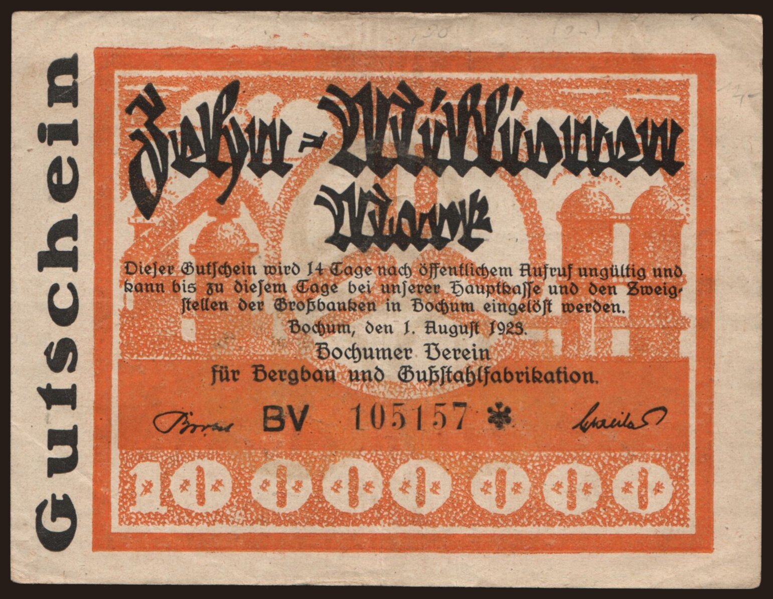 Bochum/ Bochumer Verein f. Bergbau u. Gußstahlfabrikation, 10.000.000 Mark, 1923