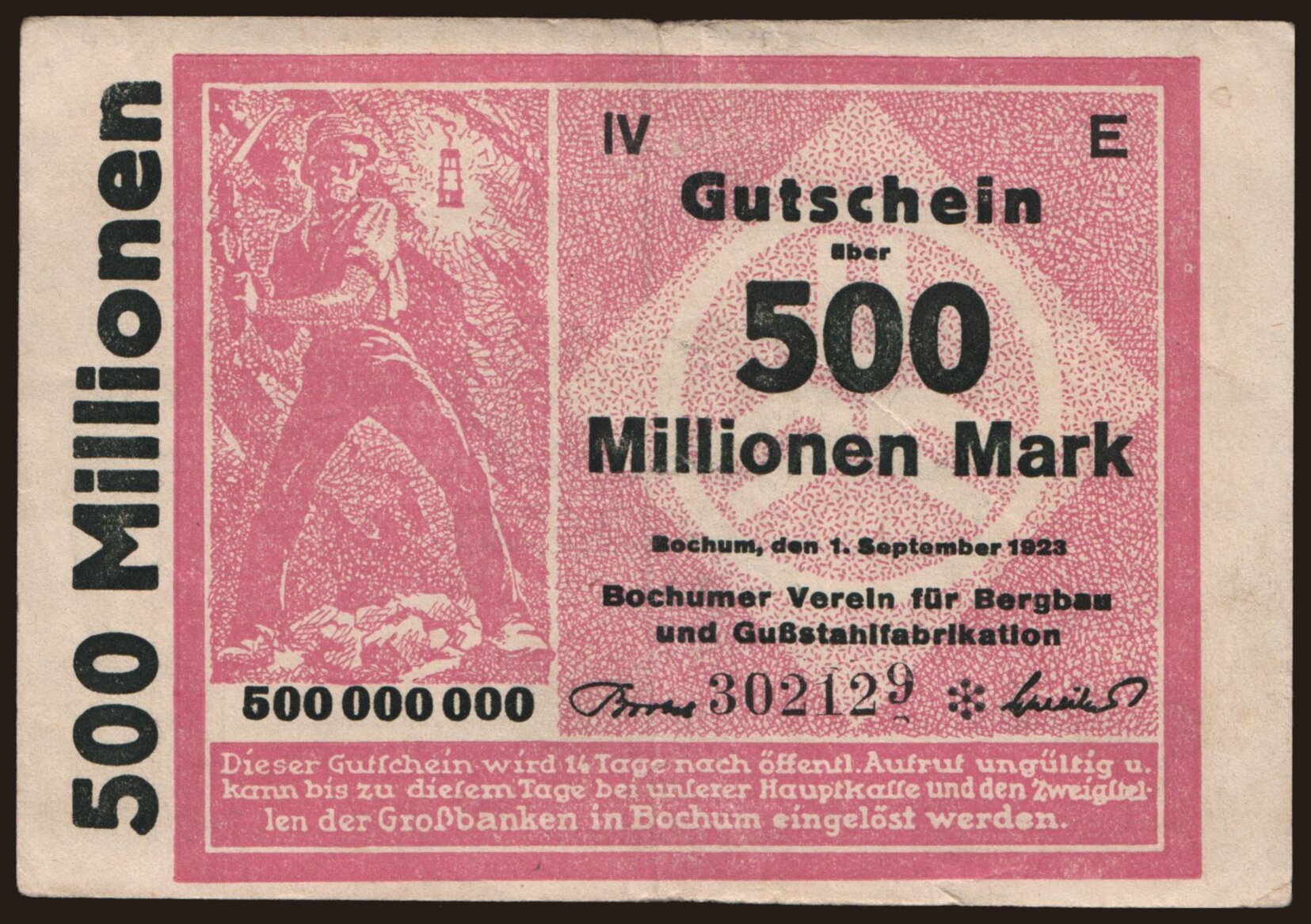 Bochum/ Bochumer Verein f. Bergbau u. Gußstahlfabrikation, 500.000.000 Mark, 1923