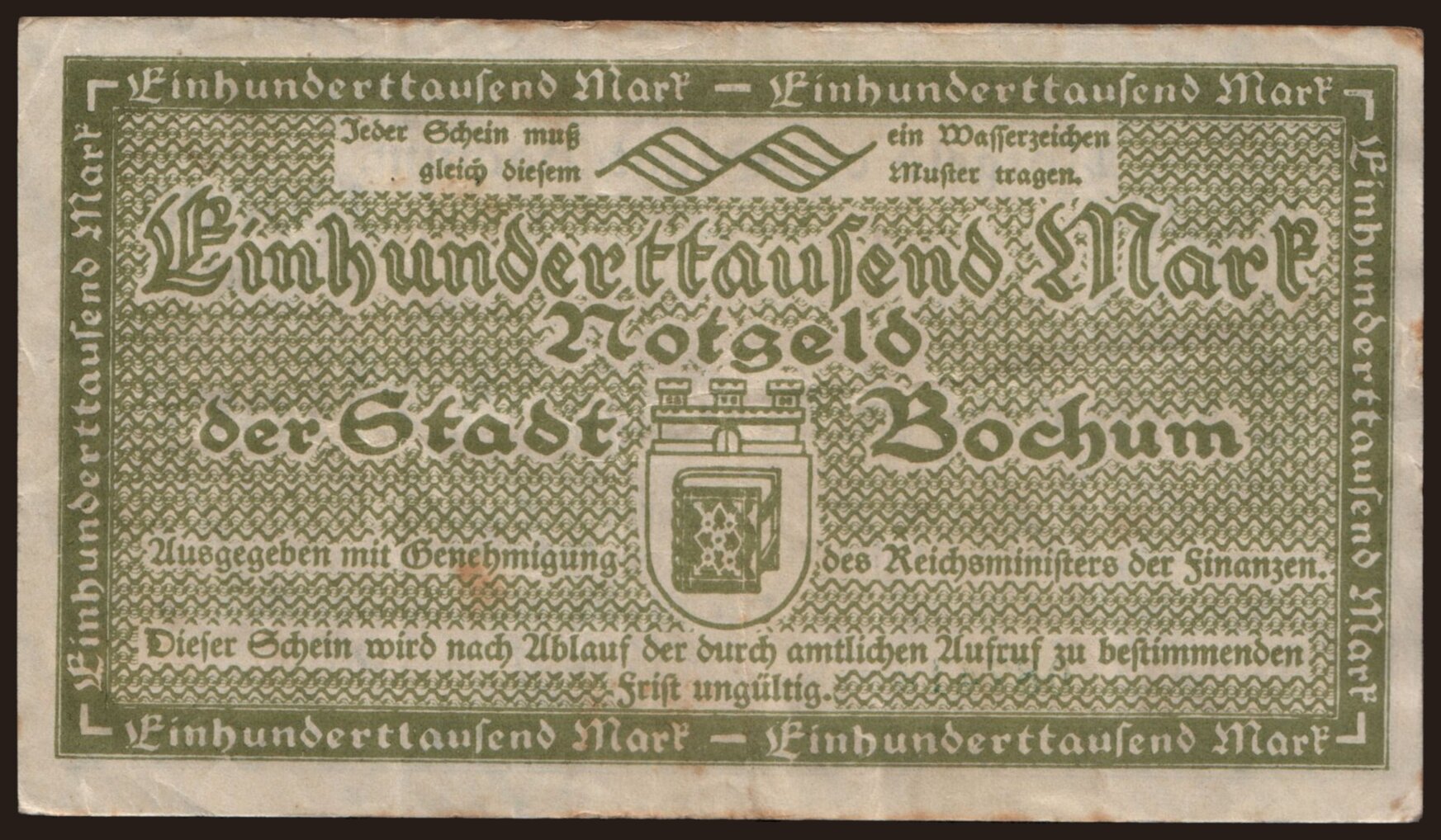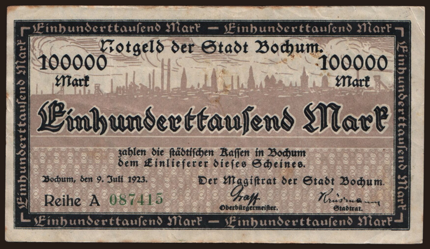 Bochum/ Stadt, 100.000 Mark, 1923