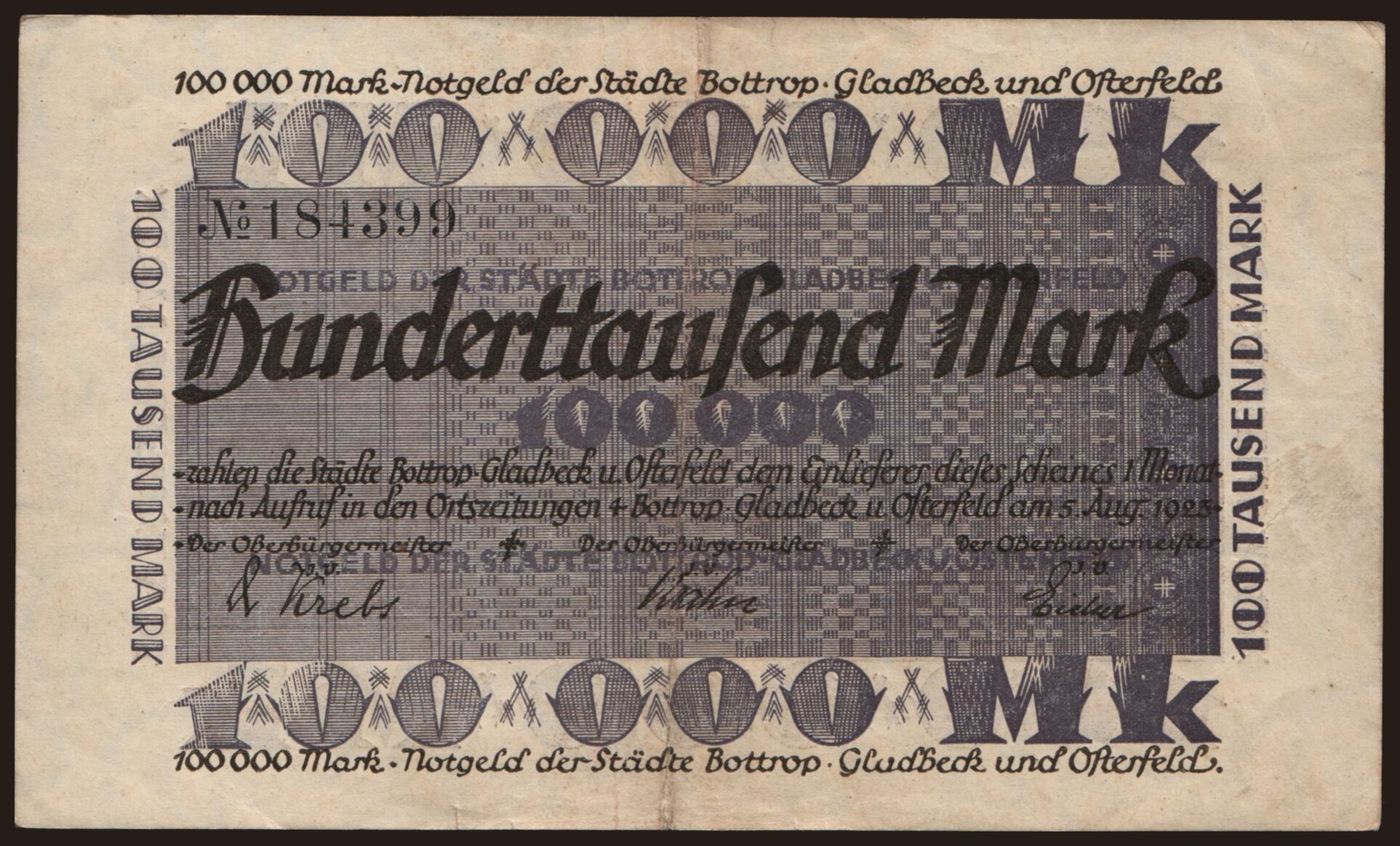 Bottrop, Gladbech, Osterfeld/ Städte, 100.000 Mark, 1923