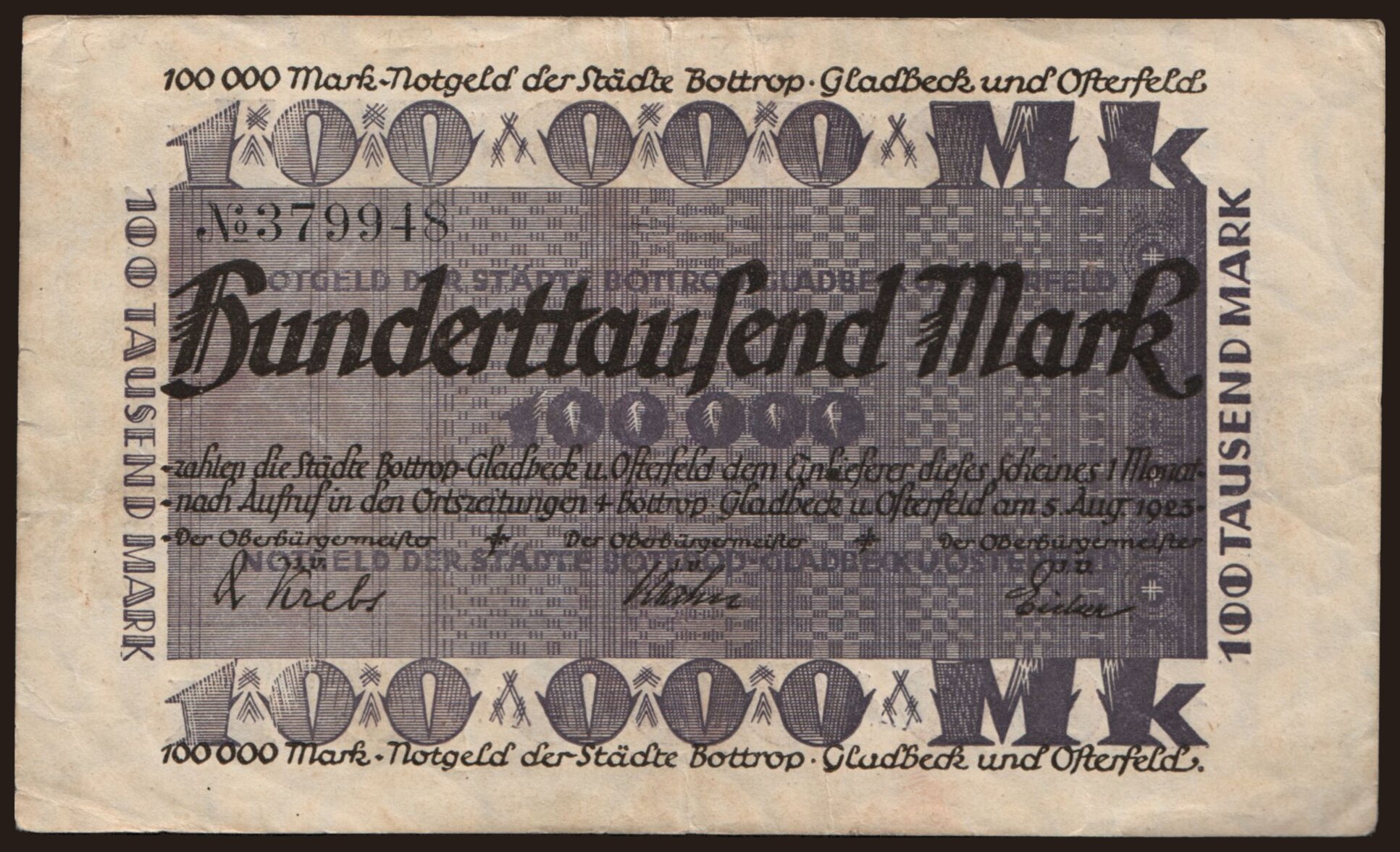 Bottrop, Gladbech, Osterfeld/ Städte, 100.000 Mark, 1923