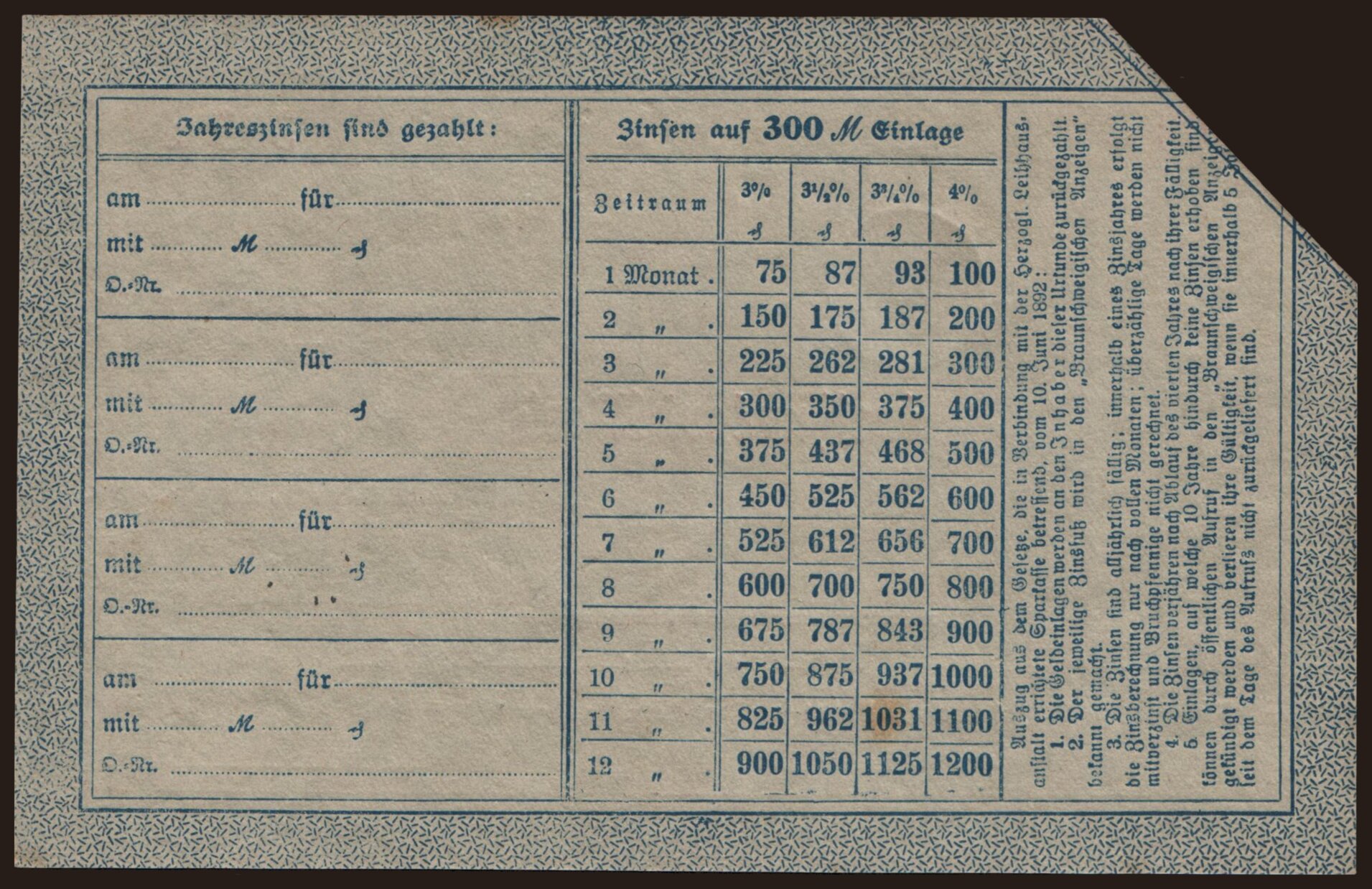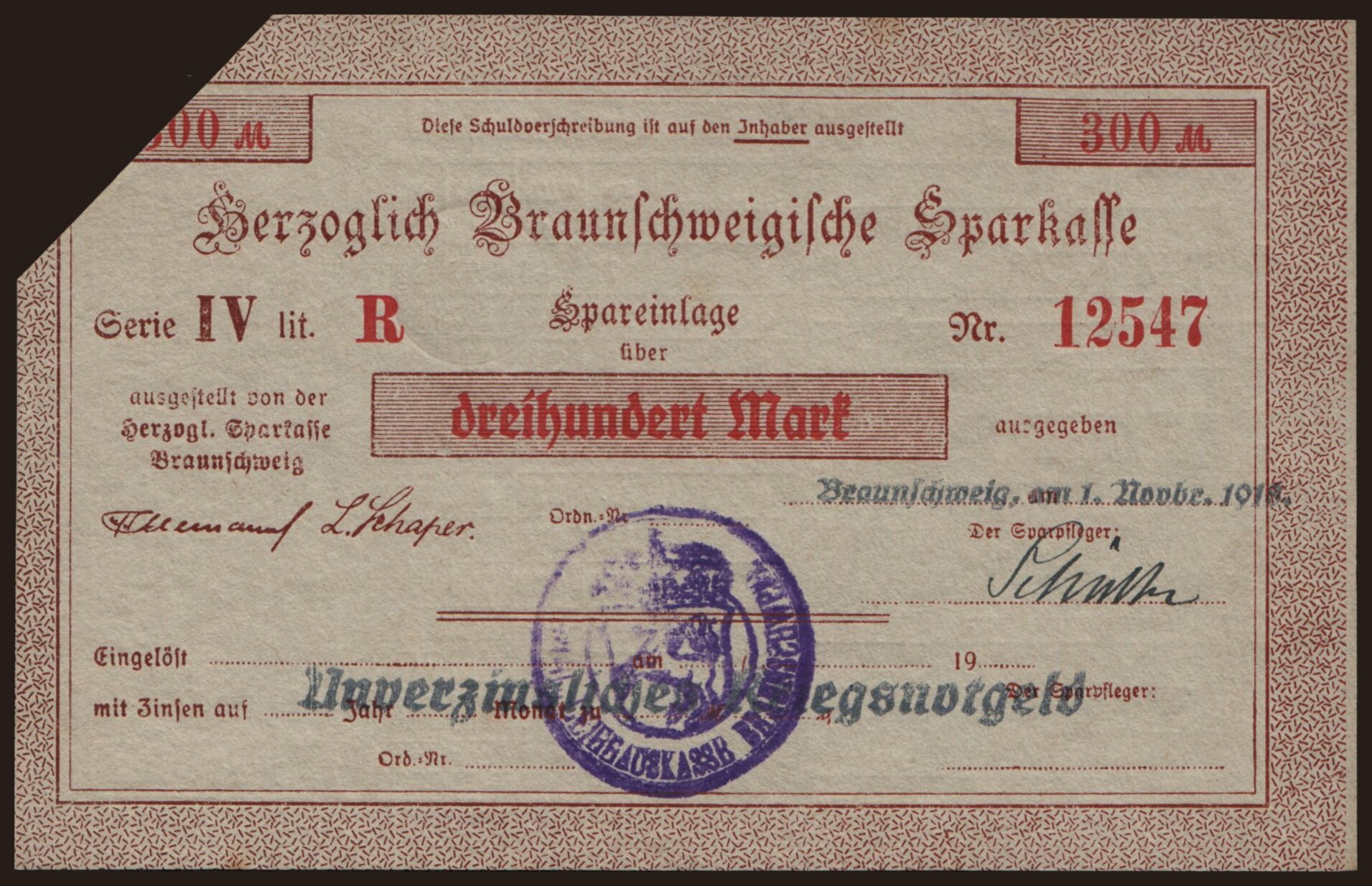 Braunschweig/ Herzoglich Braunschweigische Sparkasse, 300 Mark, 1918