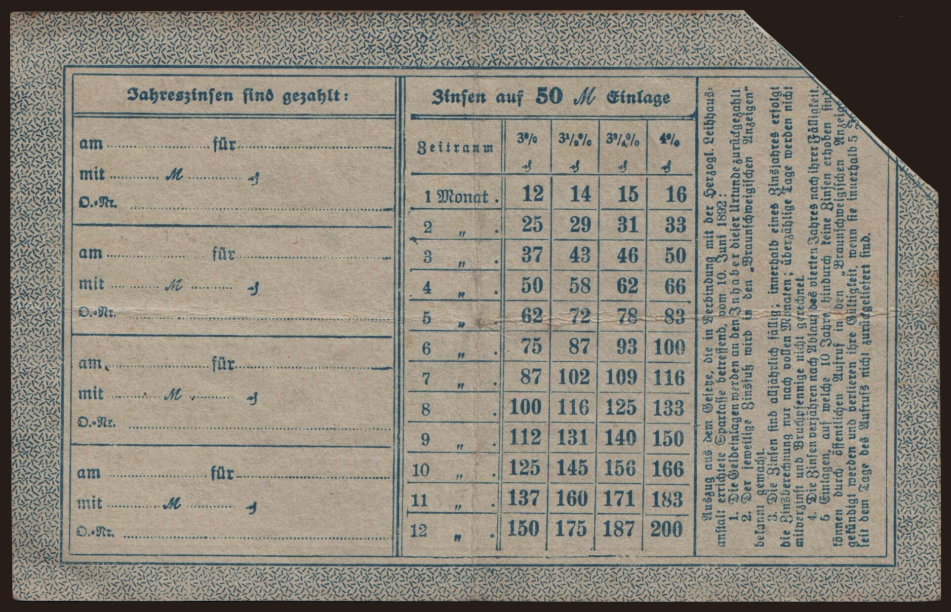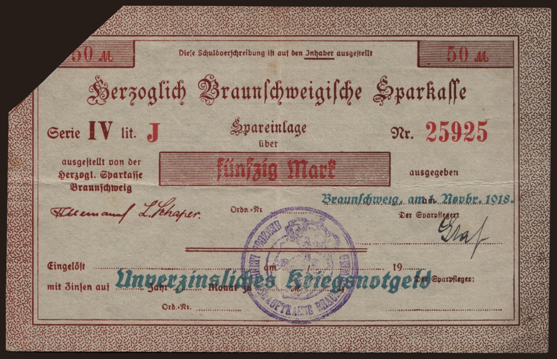 Braunschweig/ Herzoglich Braunschweigische Sparkasse, 50 Mark, 1918
