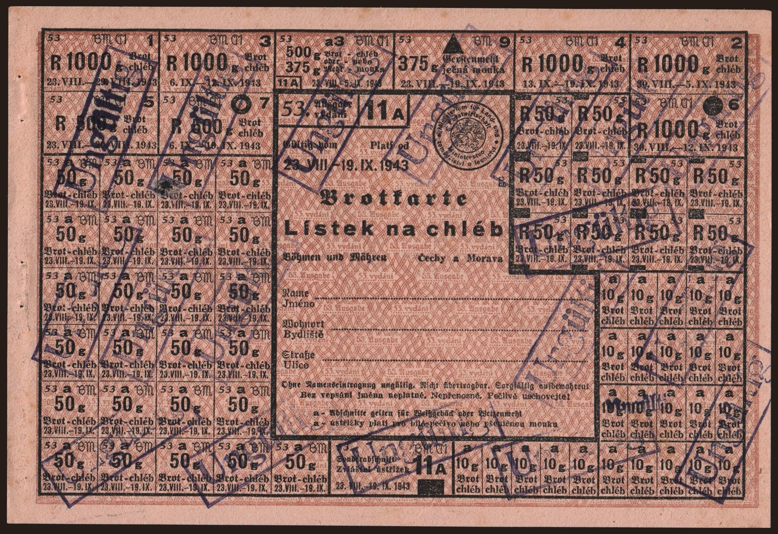 Brotkarte - Lístek na chléb, 1943