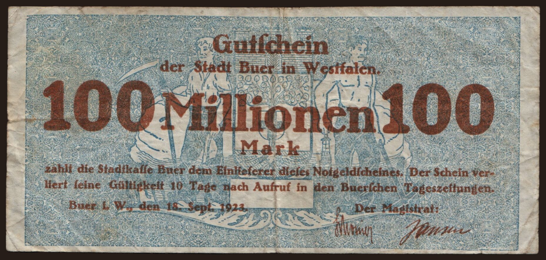 Buer/ Stadt, 100.000.000 Mark, 1923