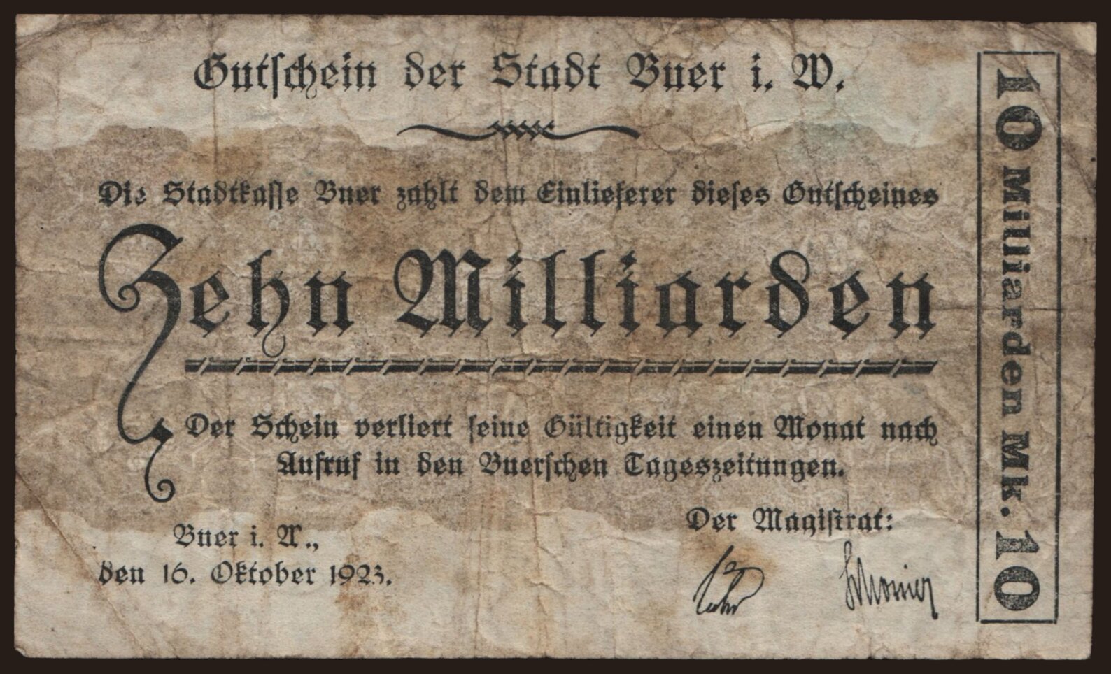 Buer/ Stadt, 10.000.000.000 Mark, 1923