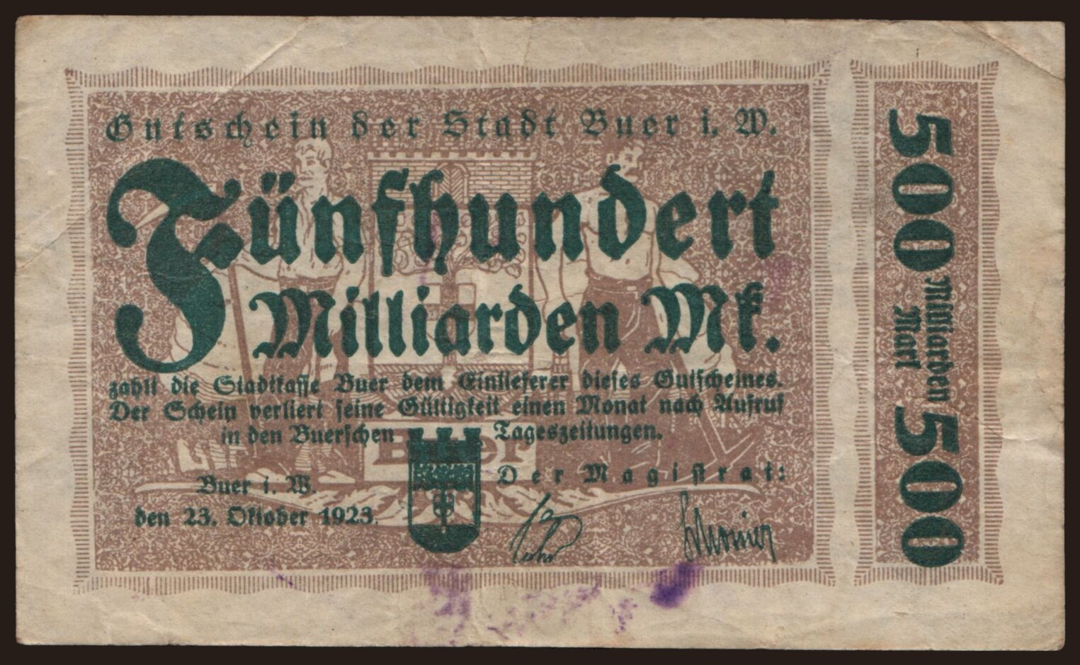 Buer/ Stadt, 500.000.000.000 Mark, 1923