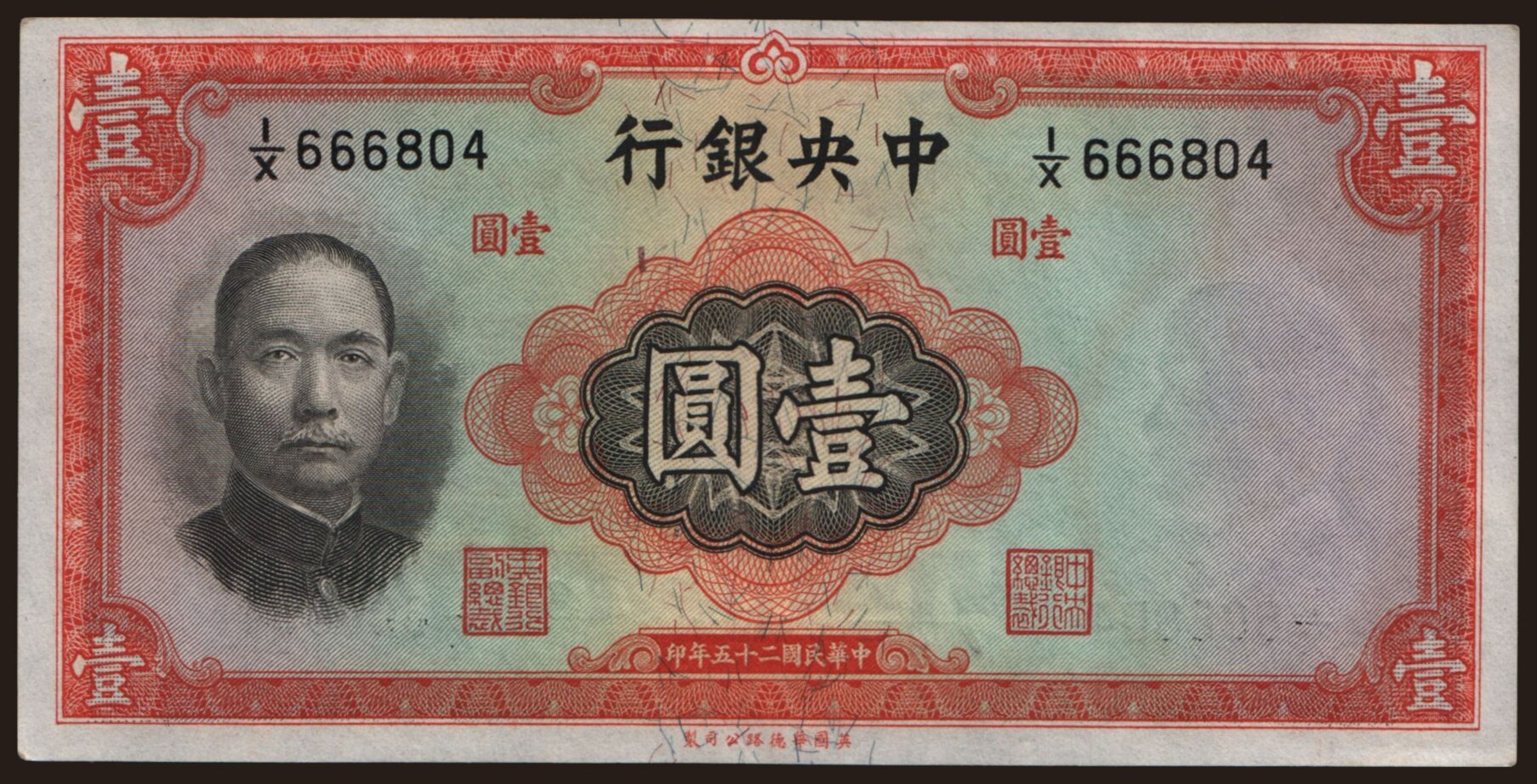 Central Bank of China, 1 yuan, 1936