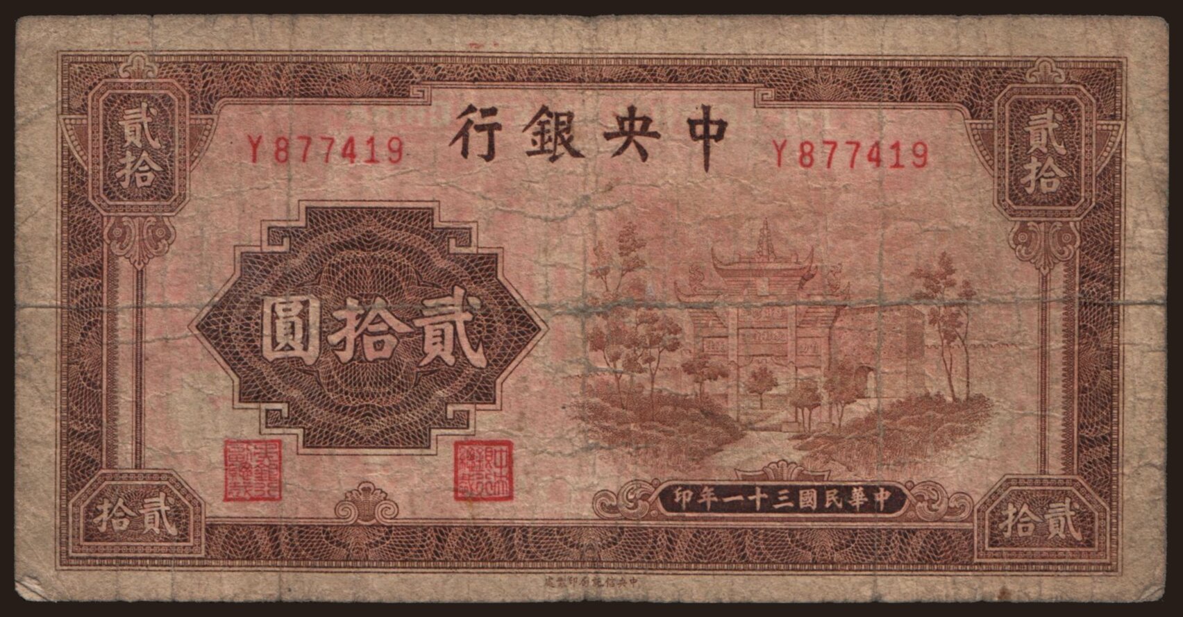 Central Bank of China, 20 yuan, 1942