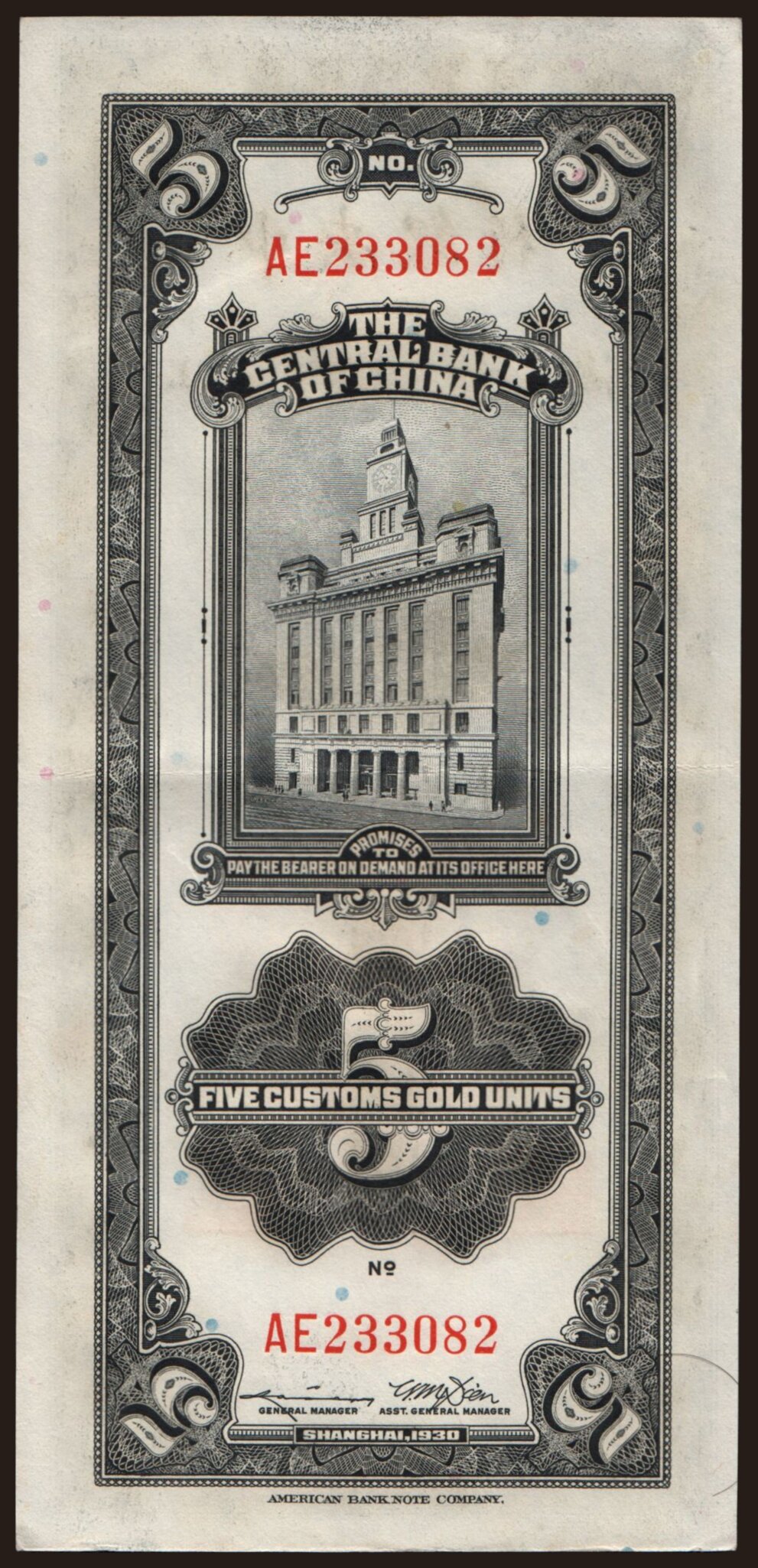 Central Bank of China, 5 gold units, 1930