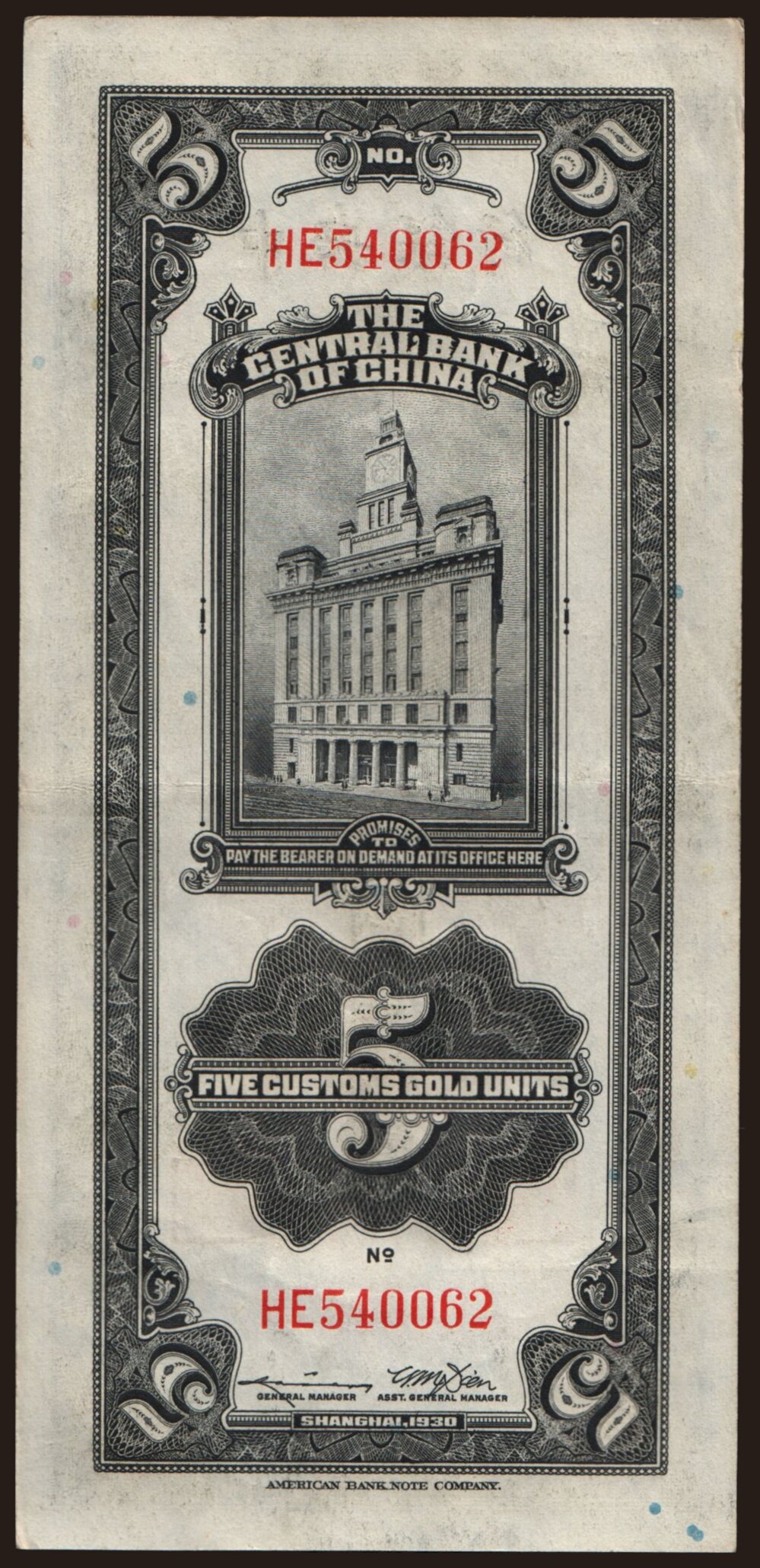 Central Bank of China, 5 gold units, 1930