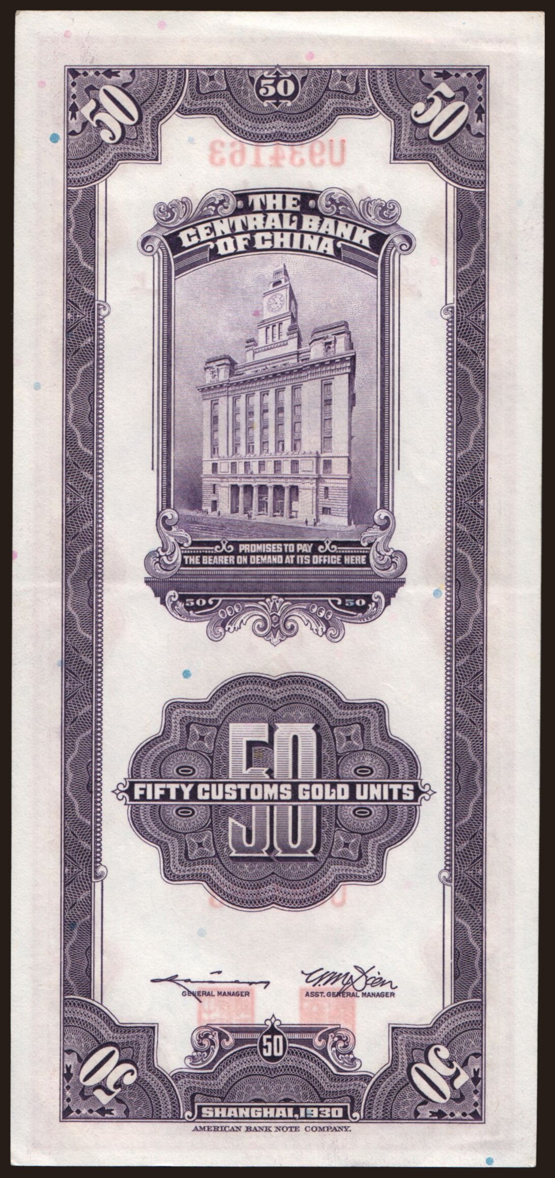 Central Bank of China, 50 gold units, 1930