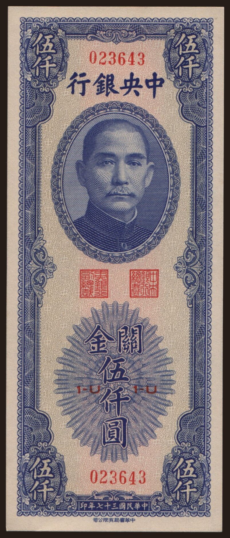 Central Bank of China, 5000 gold units, 1948