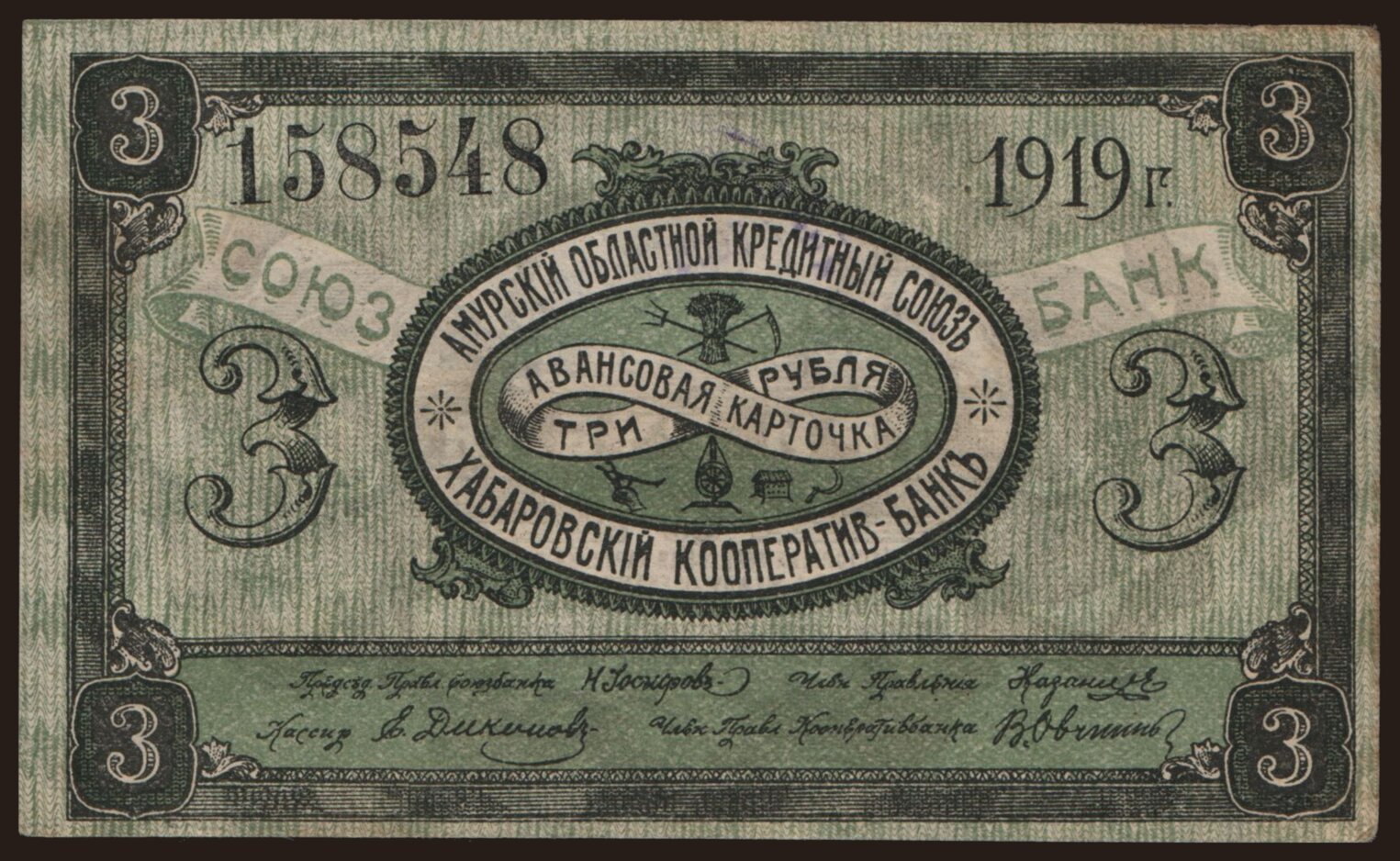 Chabarovsk/ Kooperativ Bank, 3 rubel, 1919