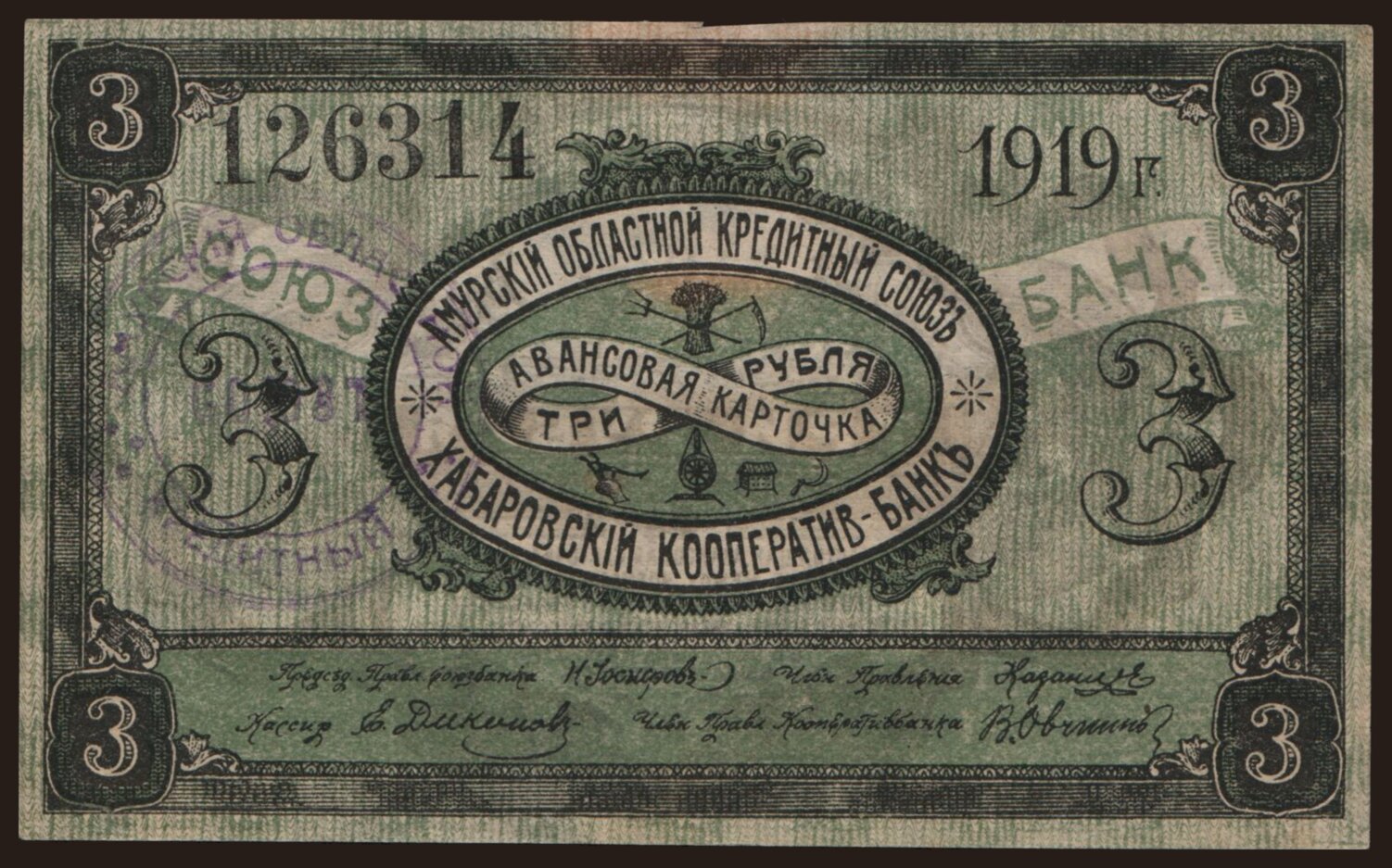 Chabarovsk/ Kooperativ Bank, 3 rubel, 1919