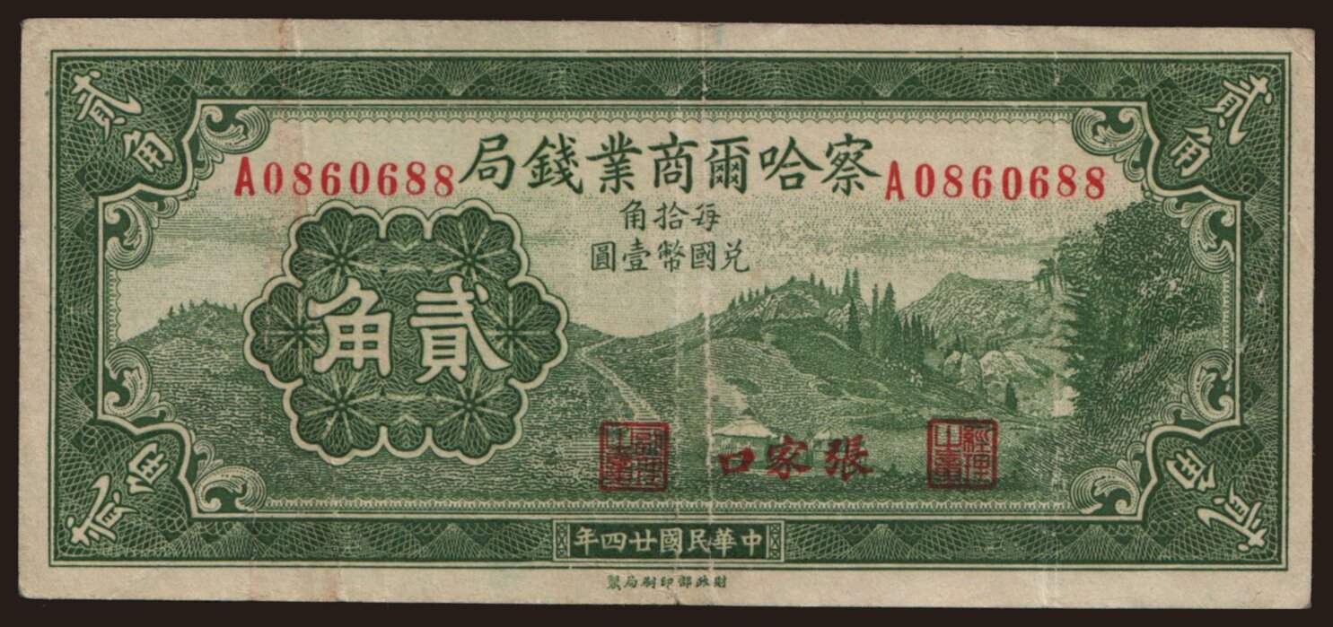 Charhar Commercial Bank, 20 cents, 1935