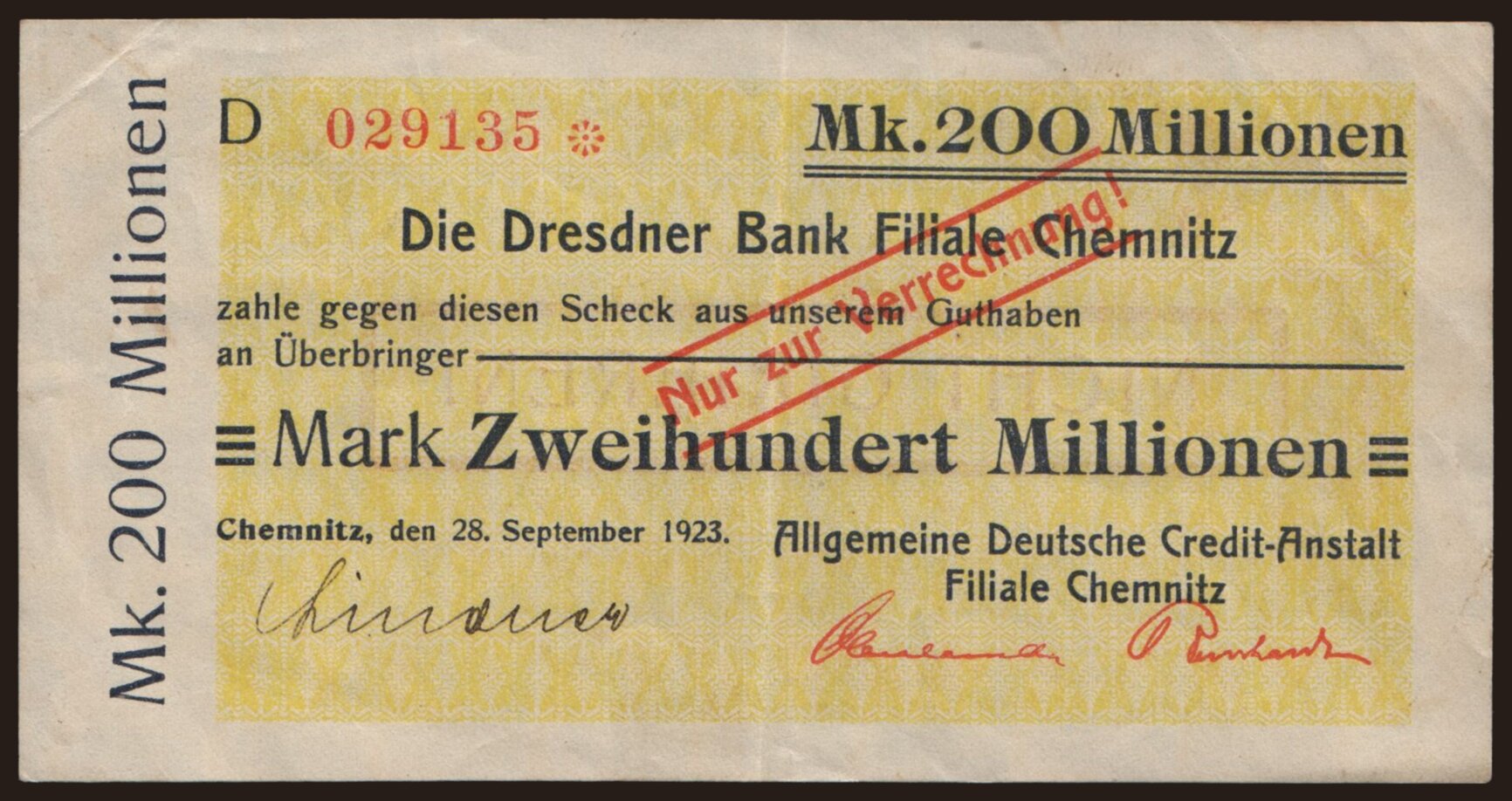 Chemnitz/ Allgemeine Deutsche Credit-Anstalt, 200.000.000 Mark, 1923