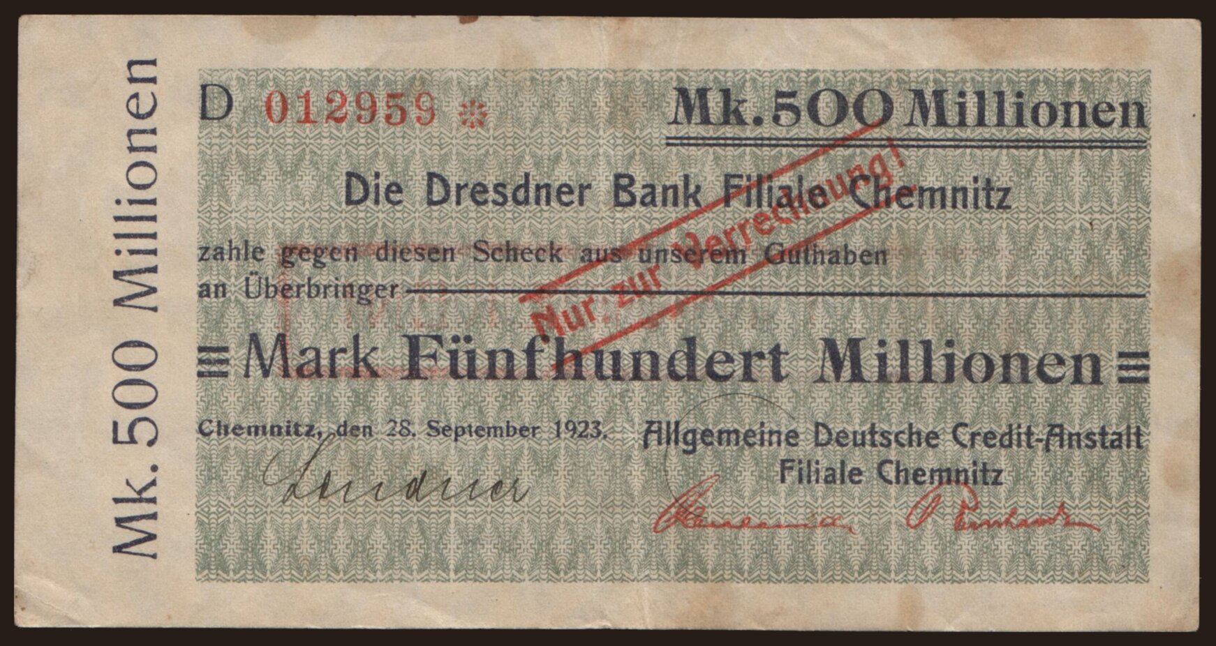 Chemnitz/ Allgemeine Deutsche Credit-Anstalt, 500.000.000 Mark, 1923