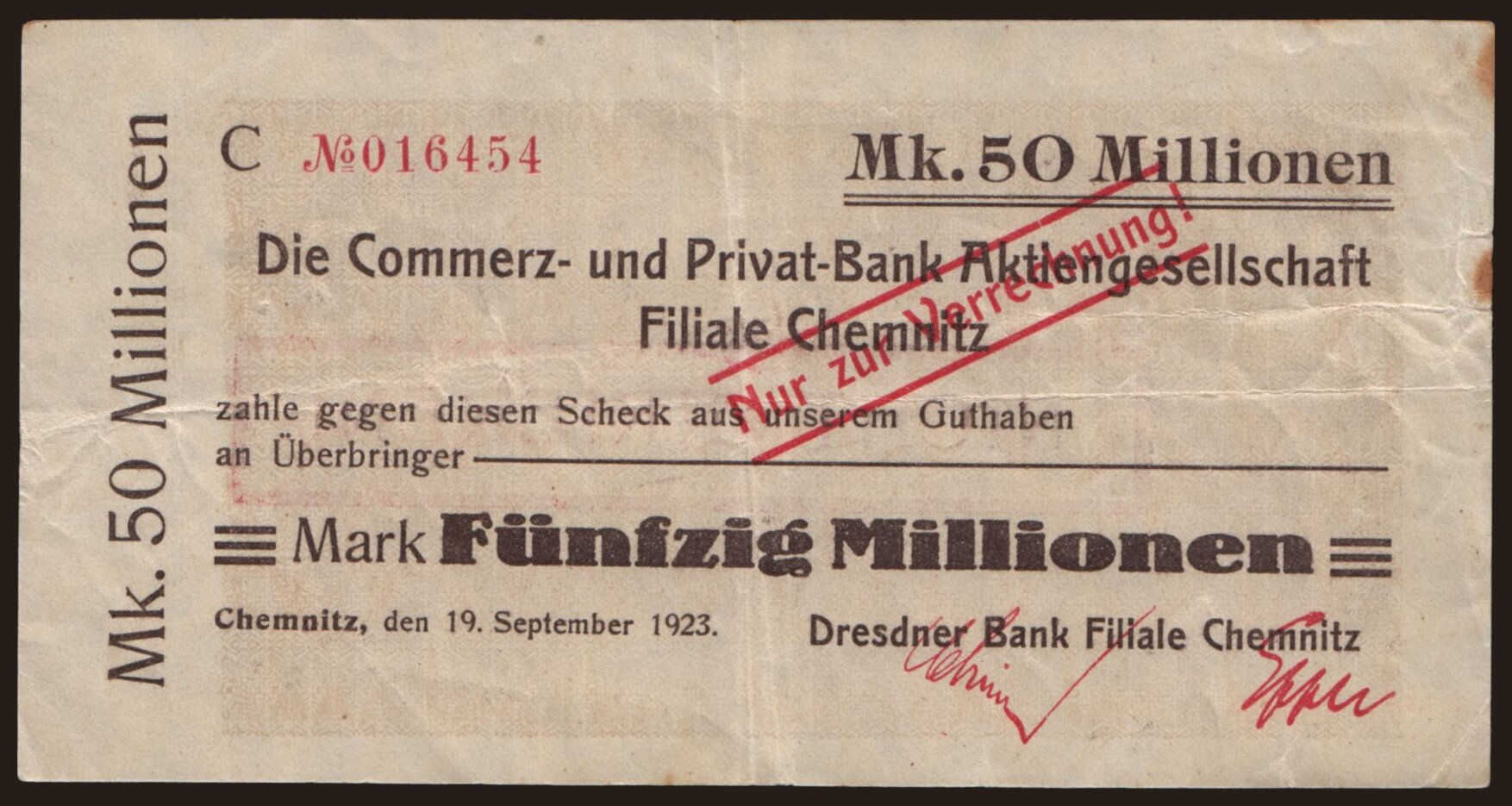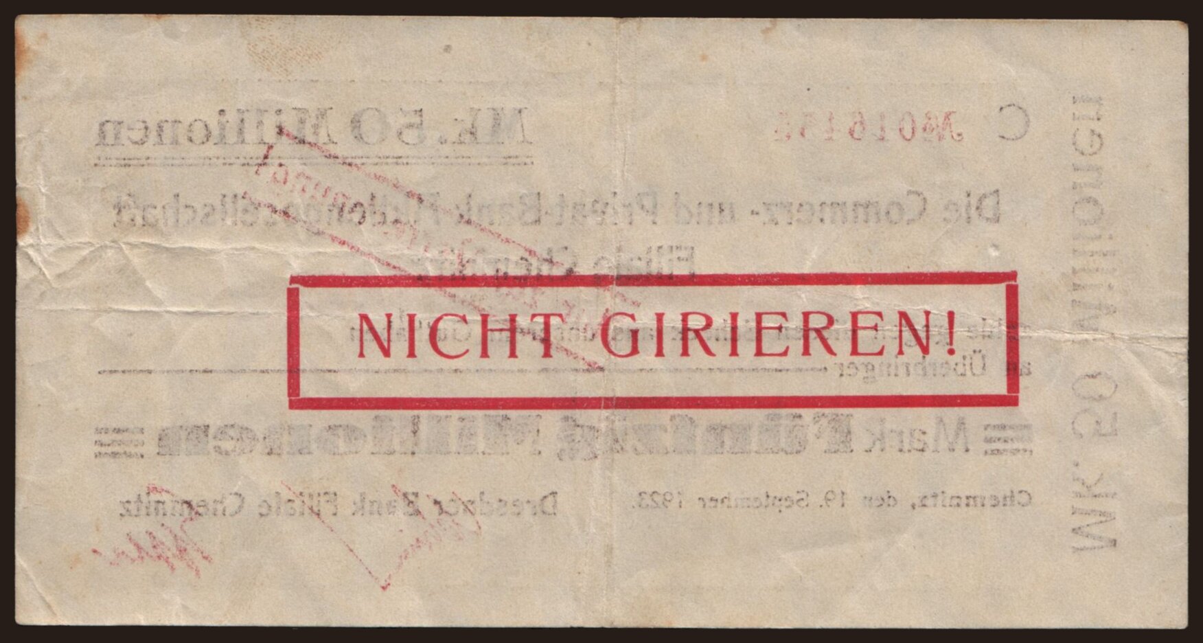 Chemnitz/ Dresdner Bank Filiale Chemnitz, 50.000.000 Mark, 1923