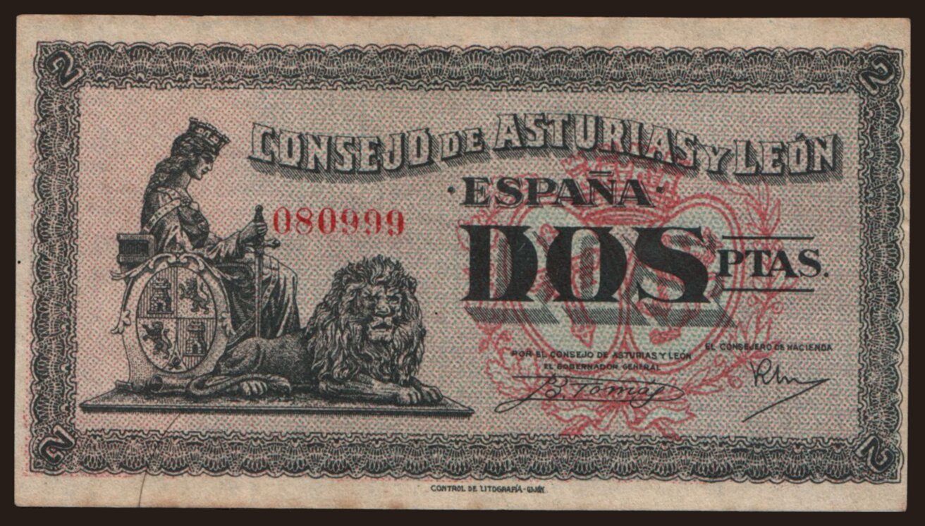 Consejo de Asturias y León, 2 pesetas, 1937