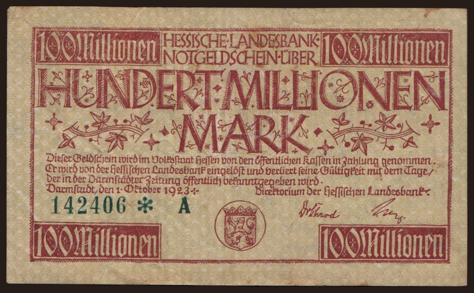 Darmstadt/ Hessische Landesbank, 100.000.000 Mark, 1923