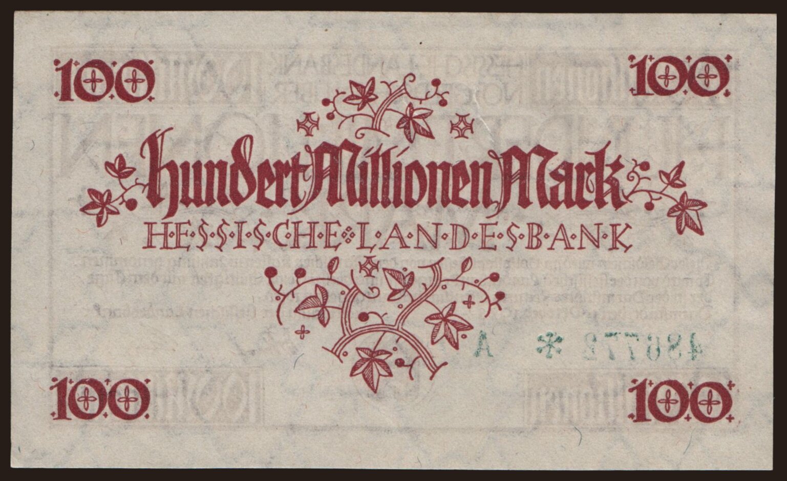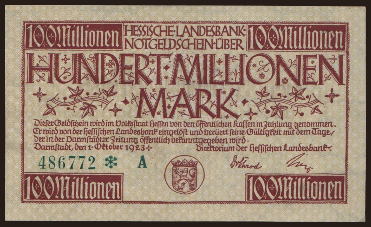 Darmstadt/ Hessische Landesbank, 100.000.000 Mark, 1923