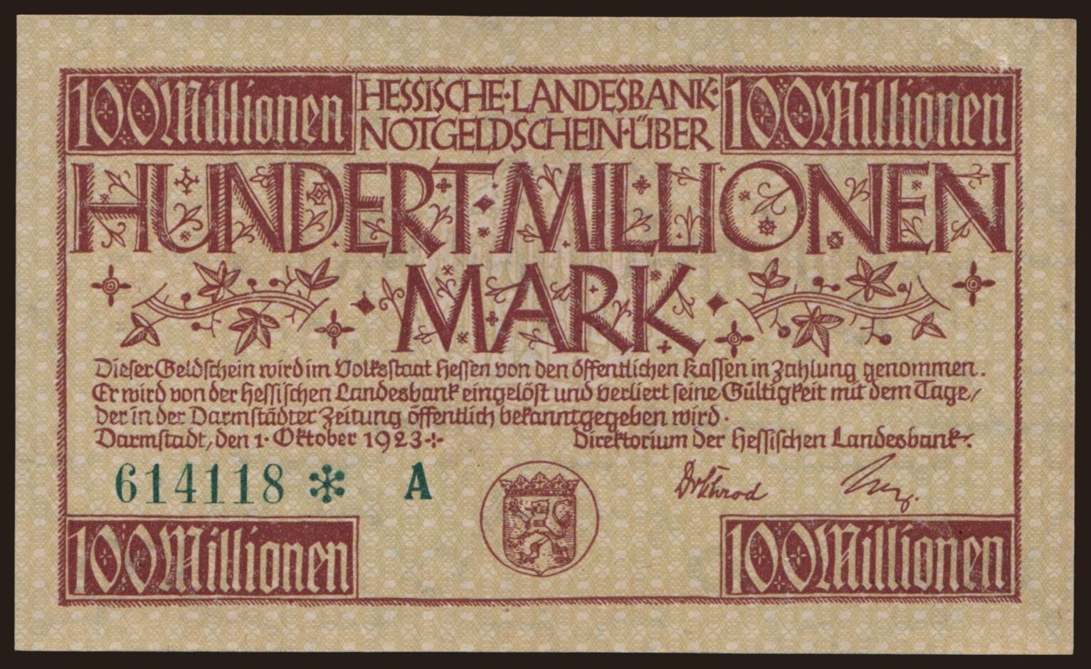 Darmstadt/ Hessische Landesbank, 100.000.000 Mark, 1923