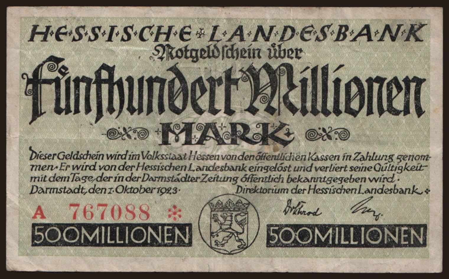 Darmstadt/ Hessische Landesbank, 500.000.000 Mark, 1923