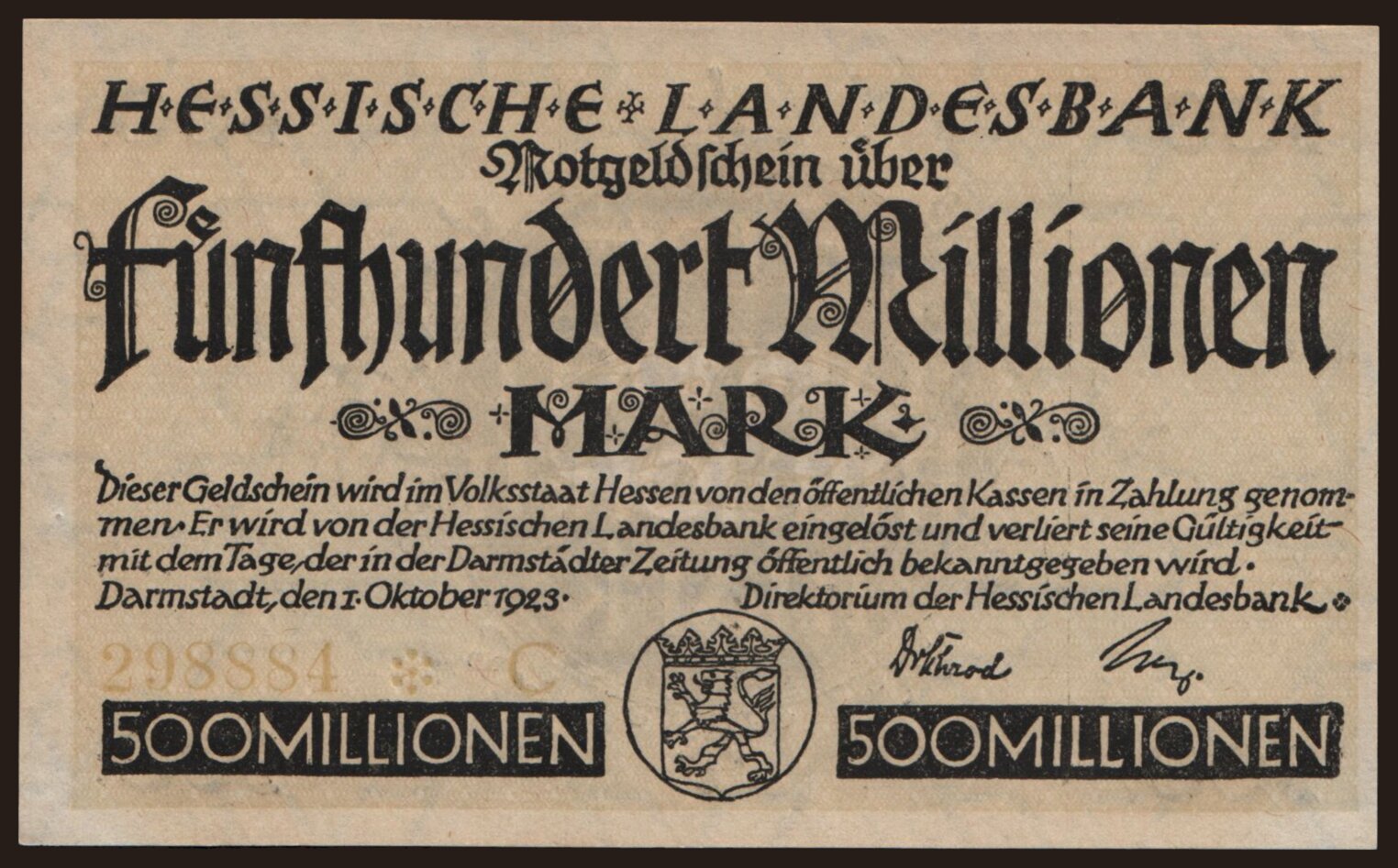 Darmstadt/ Hessische Landesbank, 500.000.000 Mark, 1923