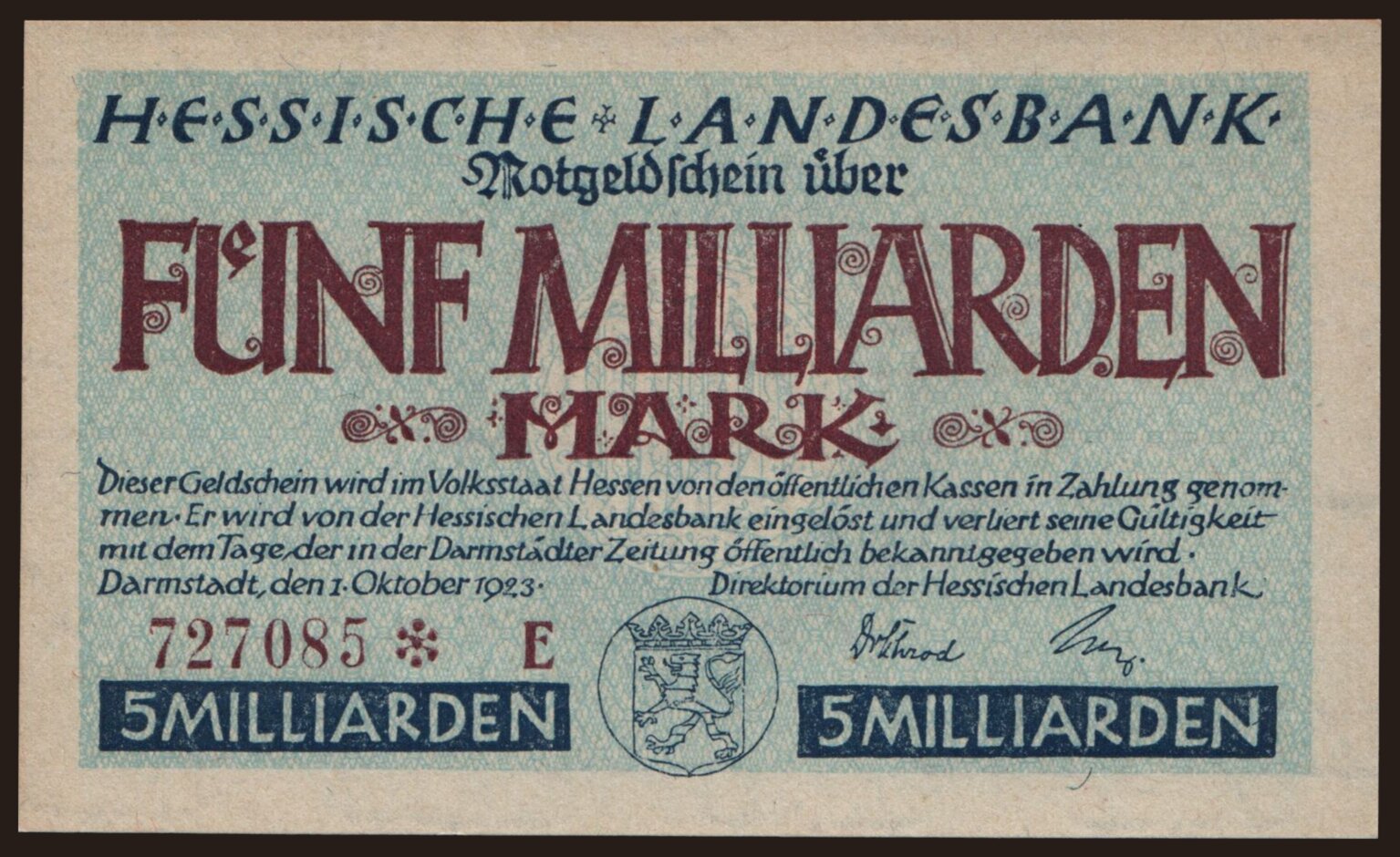 Darmstadt/ Hessische Landesbank, 5.000.000.000 Mark, 1923