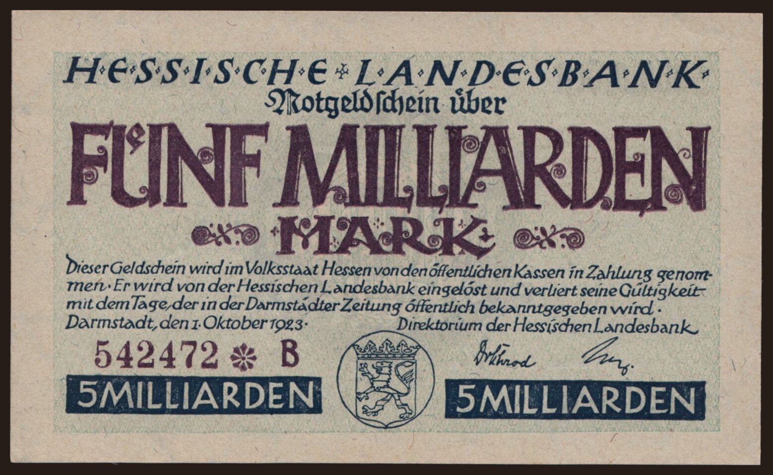 Darmstadt/ Hessische Landesbank, 5.000.000.000 Mark, 1923