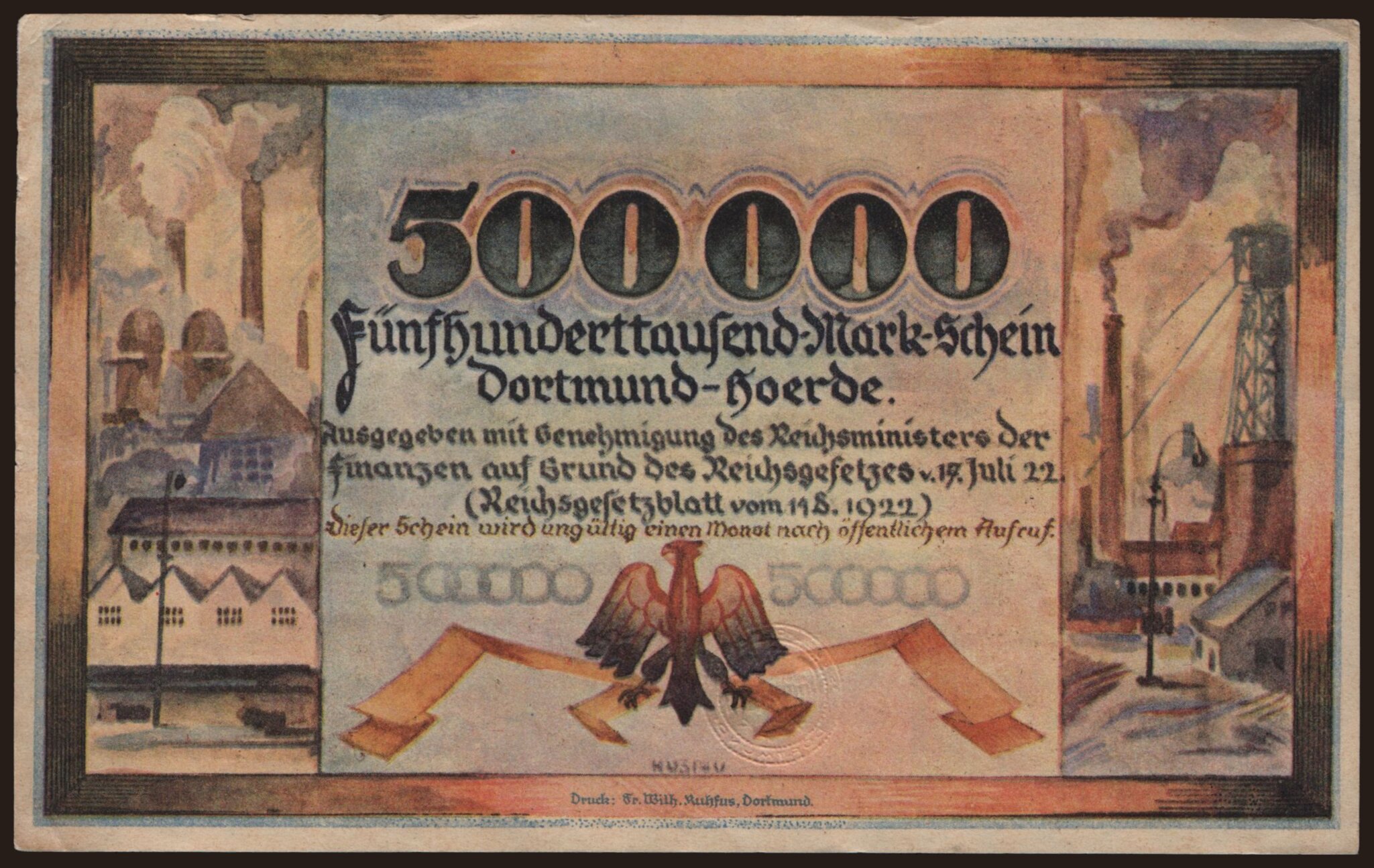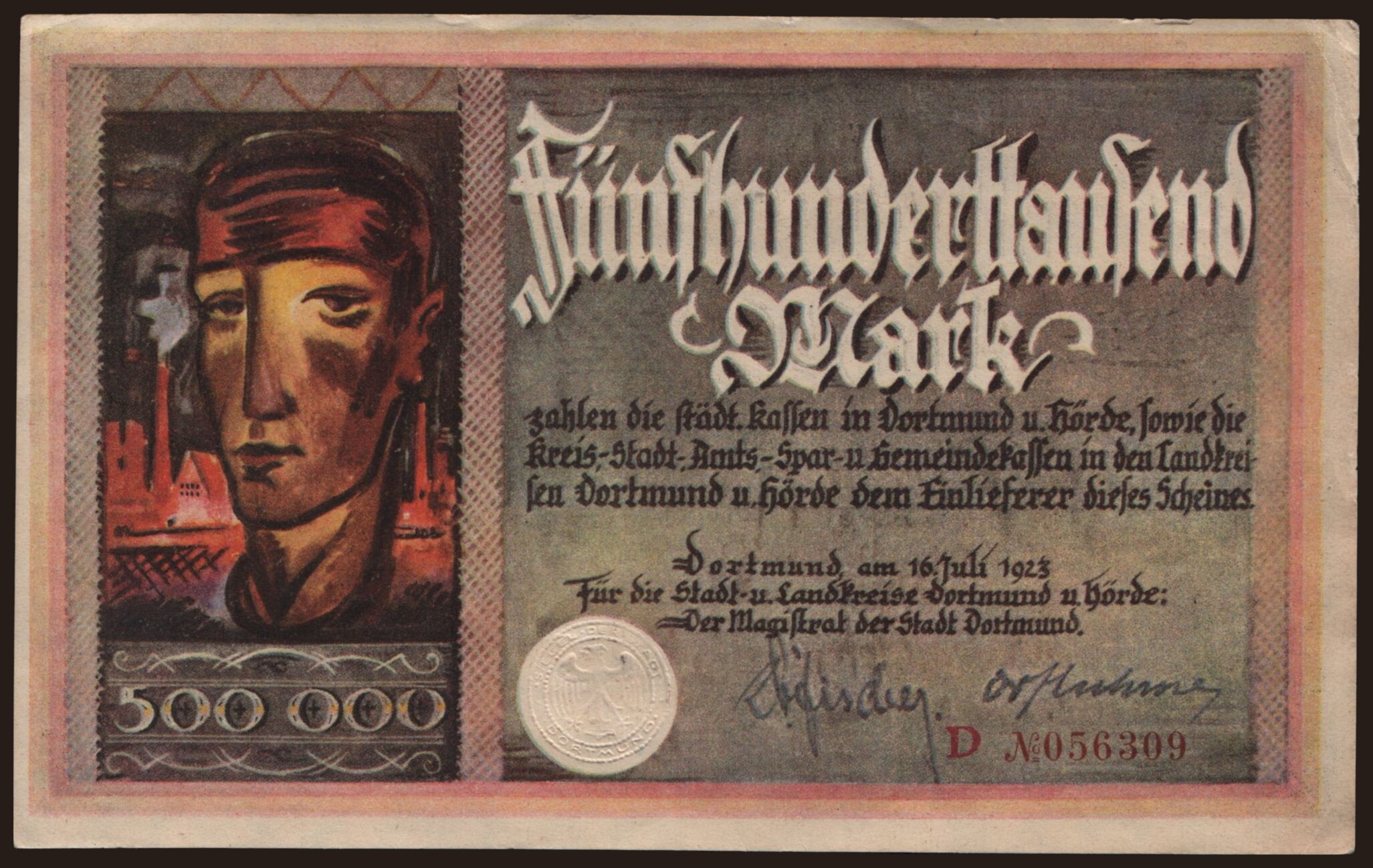 Dortmund/ Magistrat der Stadt, 500.000 Mark, 1923