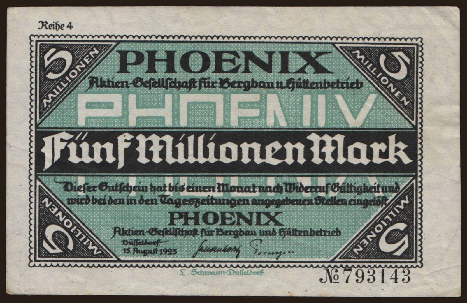 Düsseldorf/ Phoenix A.G. für Bergbau und Hüttenbetrieb, 5.000.000 Mark, 1923