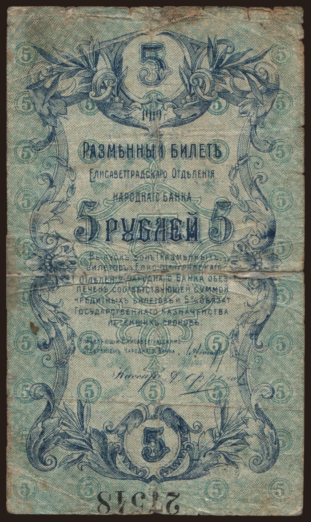 Elisabetgrad, 5 rubel, 1919