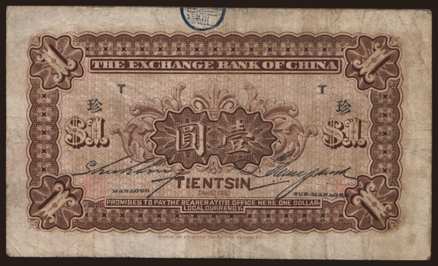 Exchange Bank of China, 1 dollar, 1920