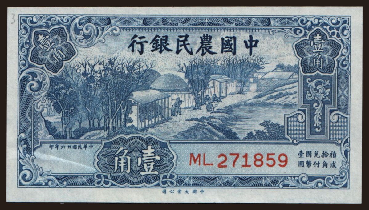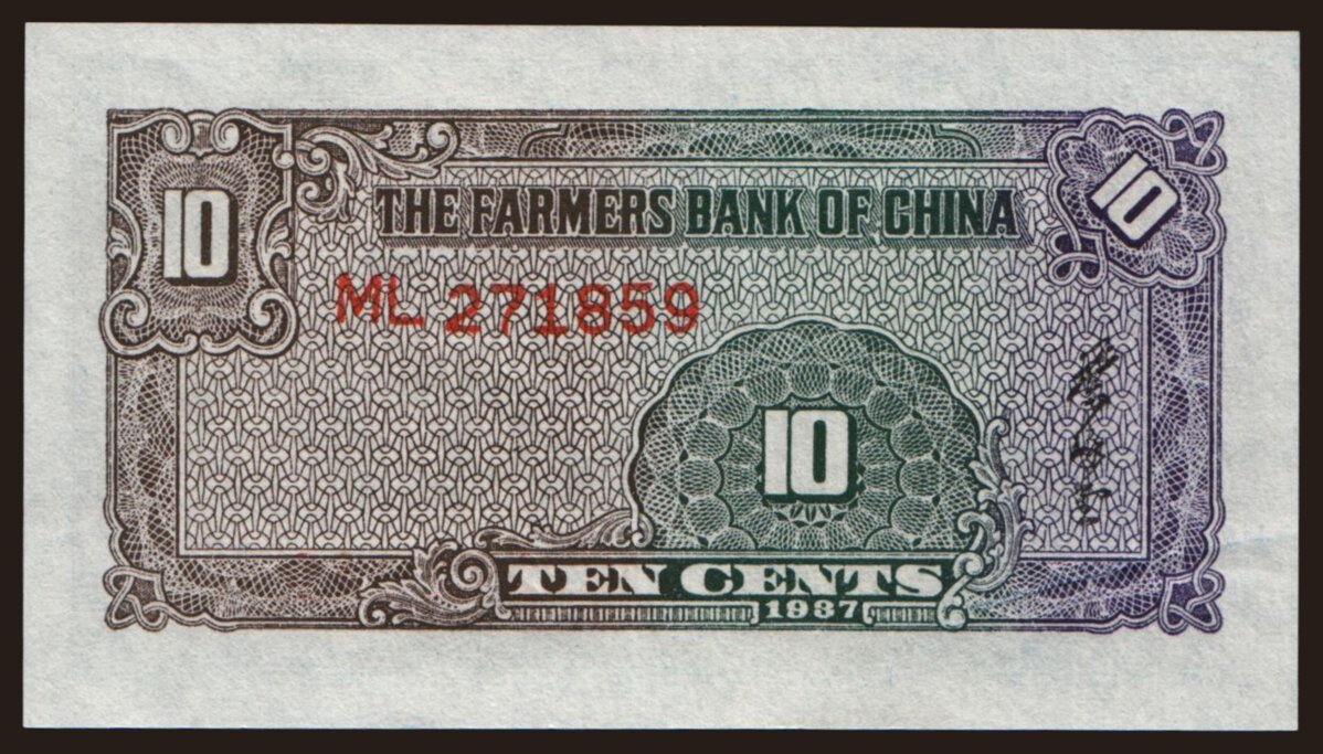 Farmers Bank of China, 10 cents, 1937