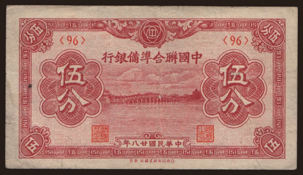 Federal Reserve Bank of China, 5 fen, 1938