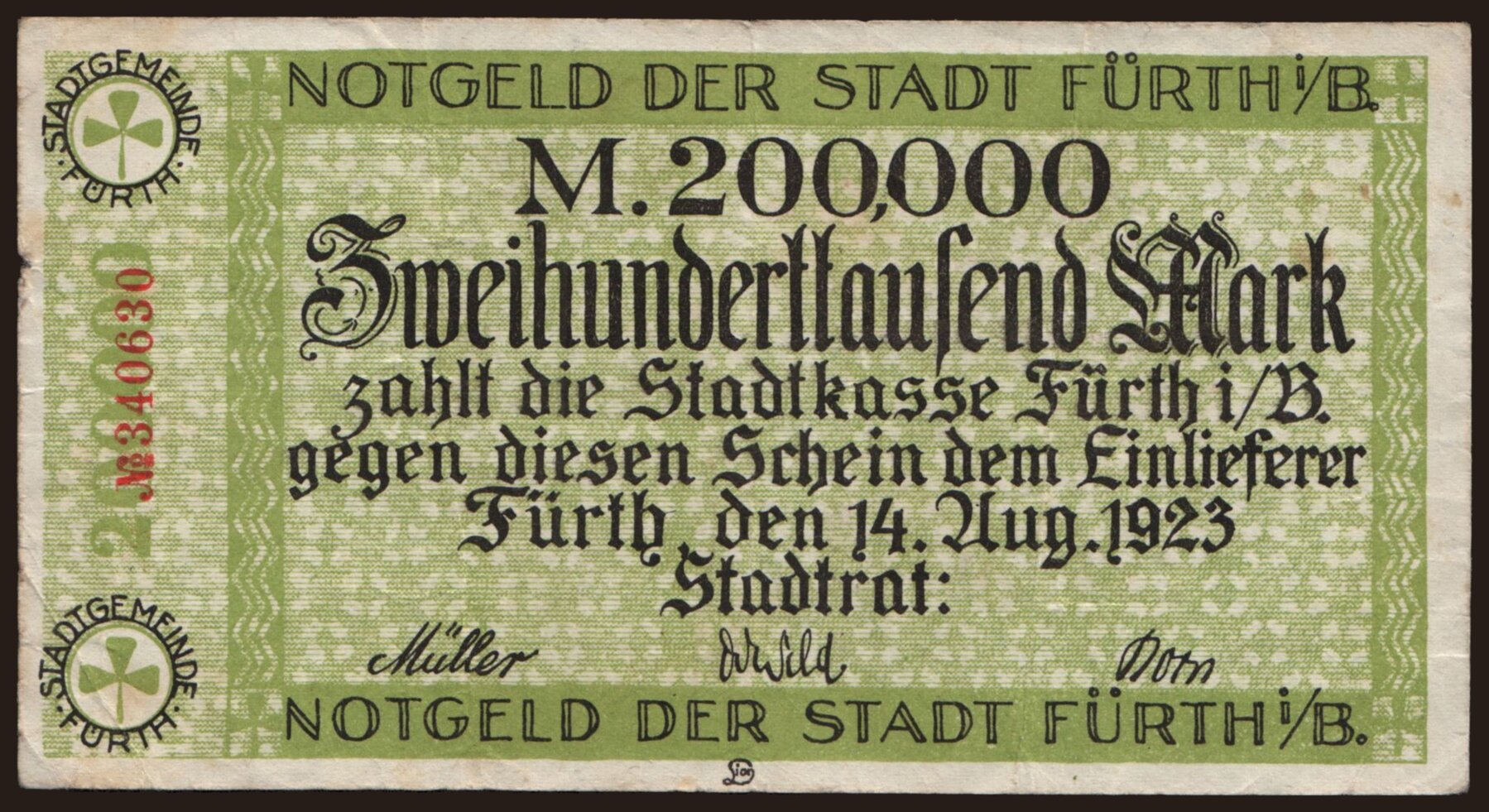 Fürth/ Stadt, 200.000 Mark, 1923