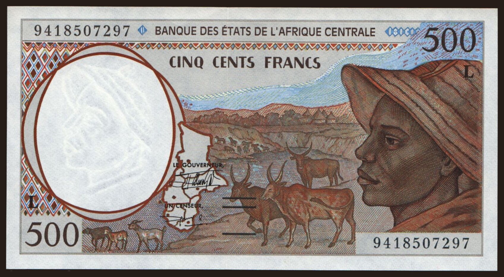 Gabon, 500 francs, 1994