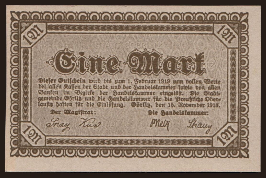 Görlitz/ Stadt und Handelskammer, 1 Mark, 1918