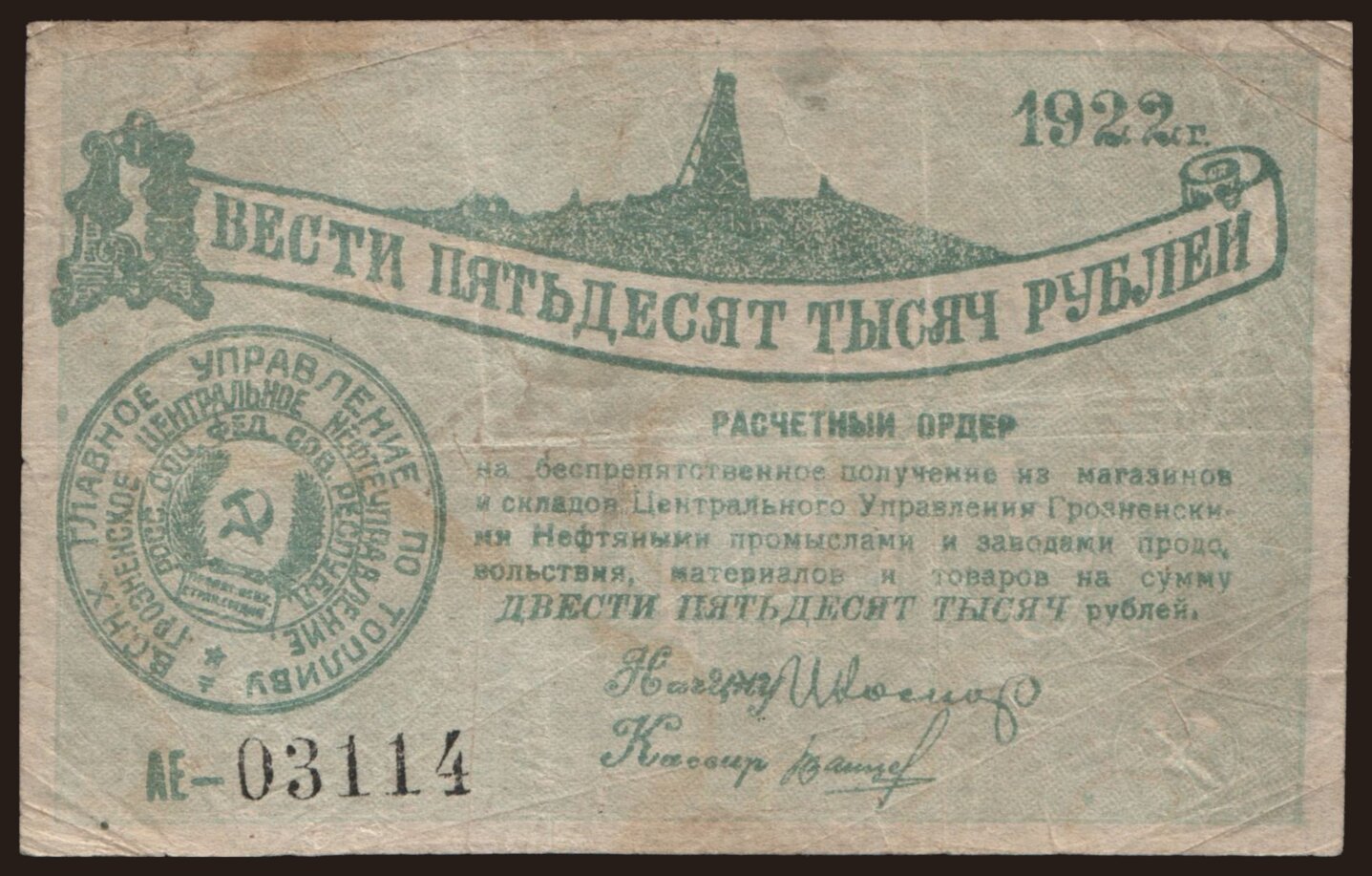 Groznyj/ Grozneft, 250.000 rubel, 1922