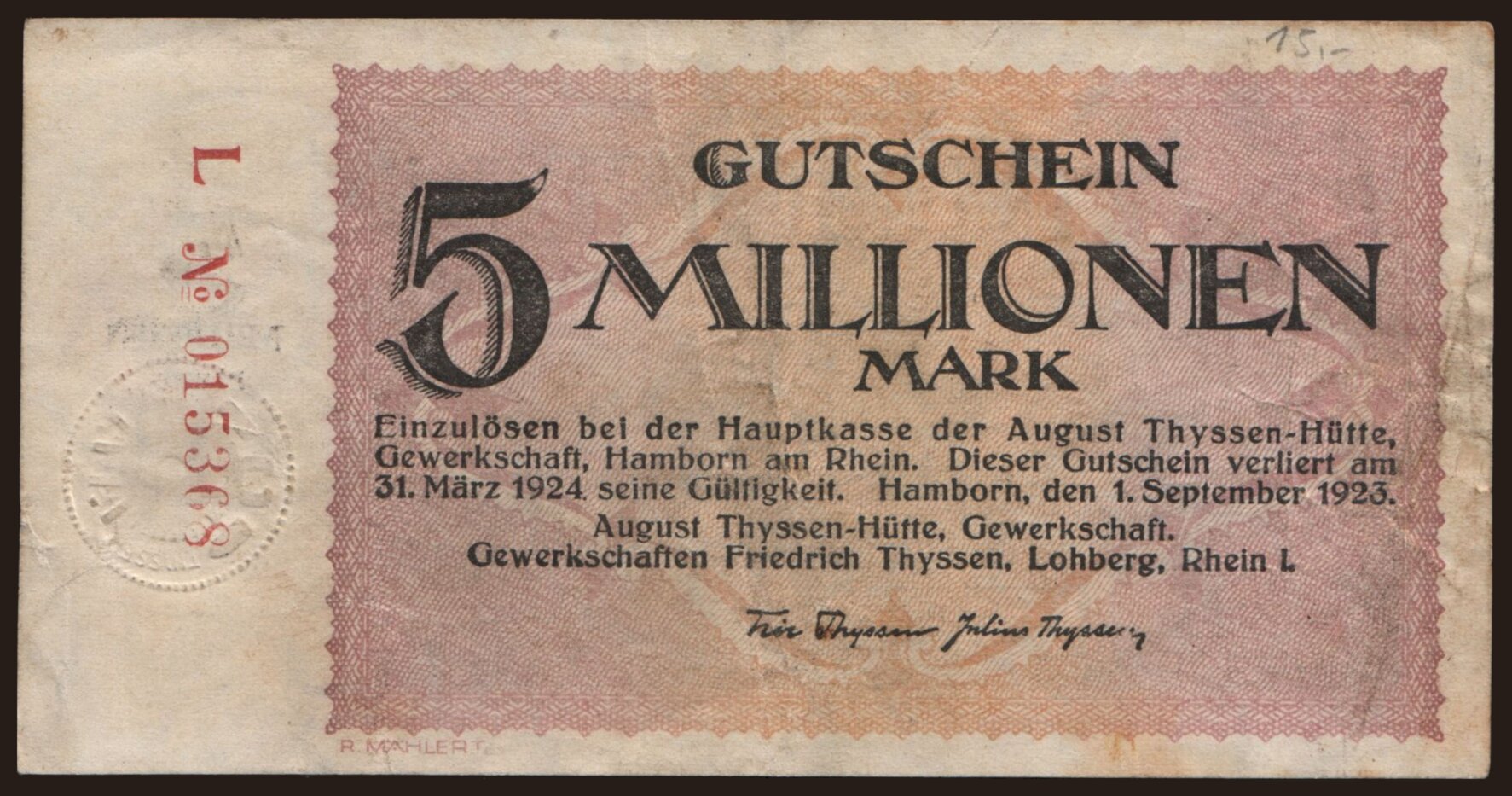Hamborn/ August Thyssen Hütte, 5.000.000 Mark, 1923