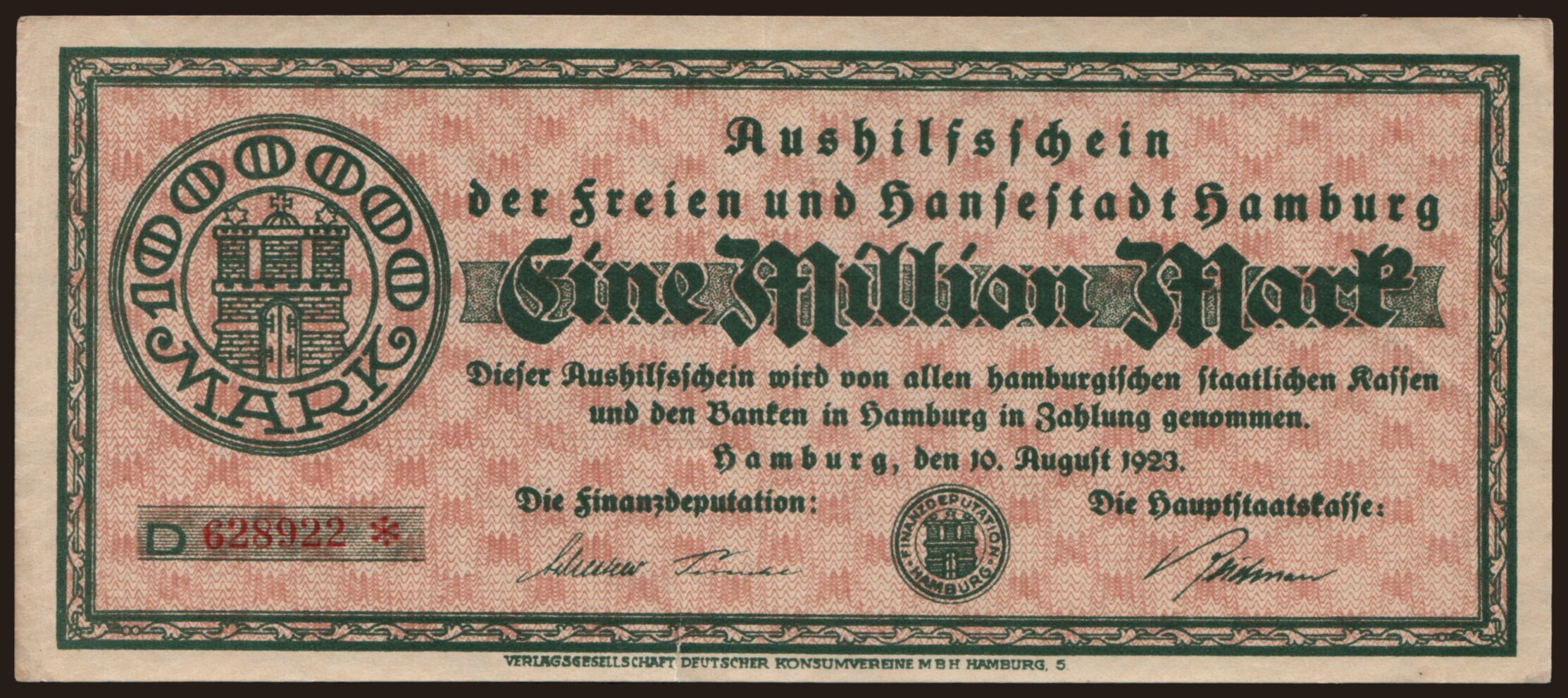 Hamburg/ Finanzdeputation und Hauptstaatskasse, 1.000.000 Mark, 1923